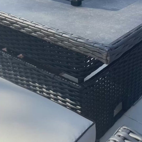 Manhattan Rattan 8 Seater Corner Rising Dining Table Set with Fire Pit – Black