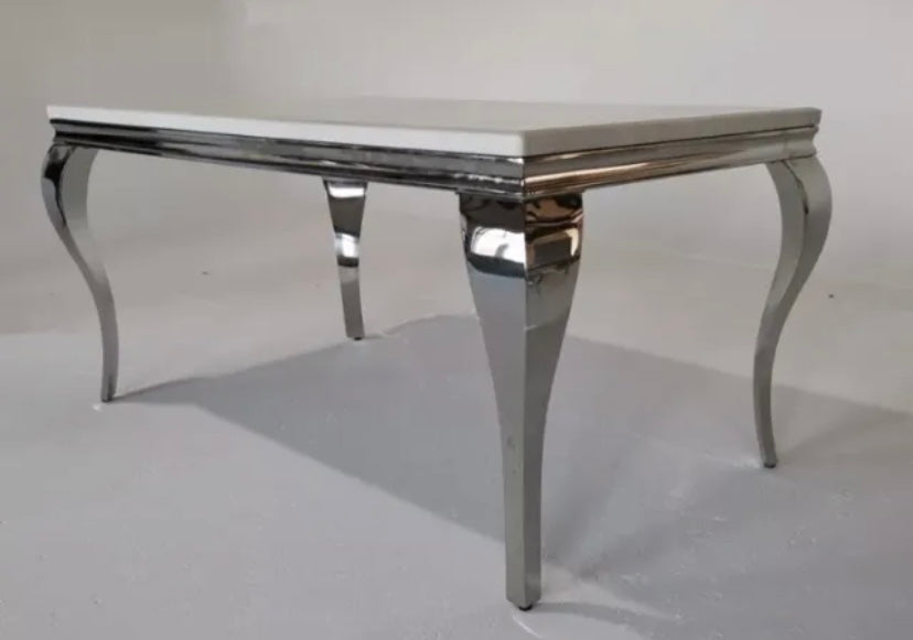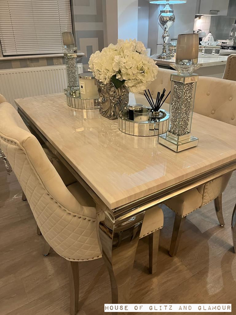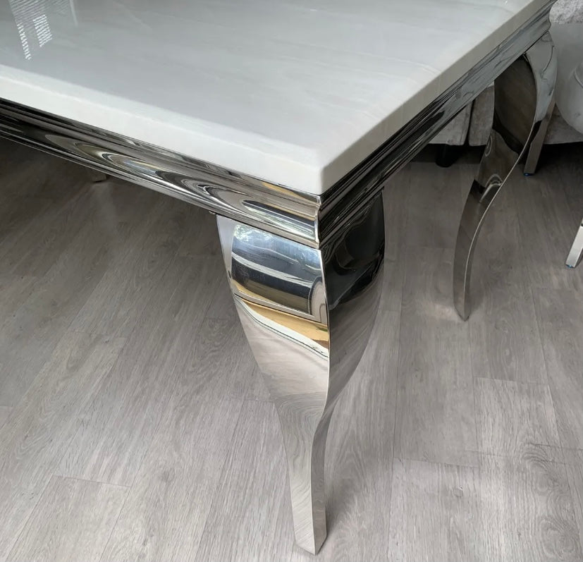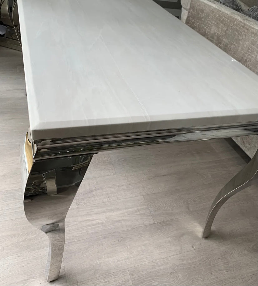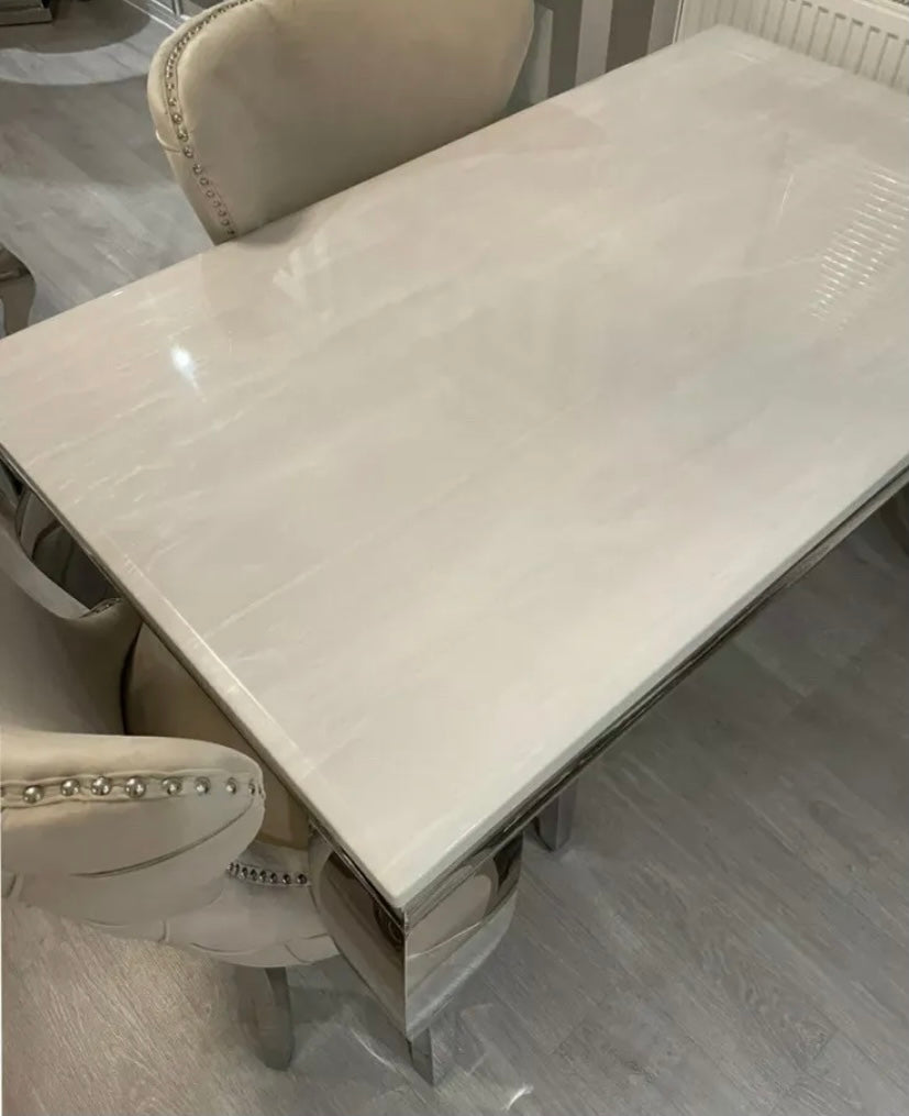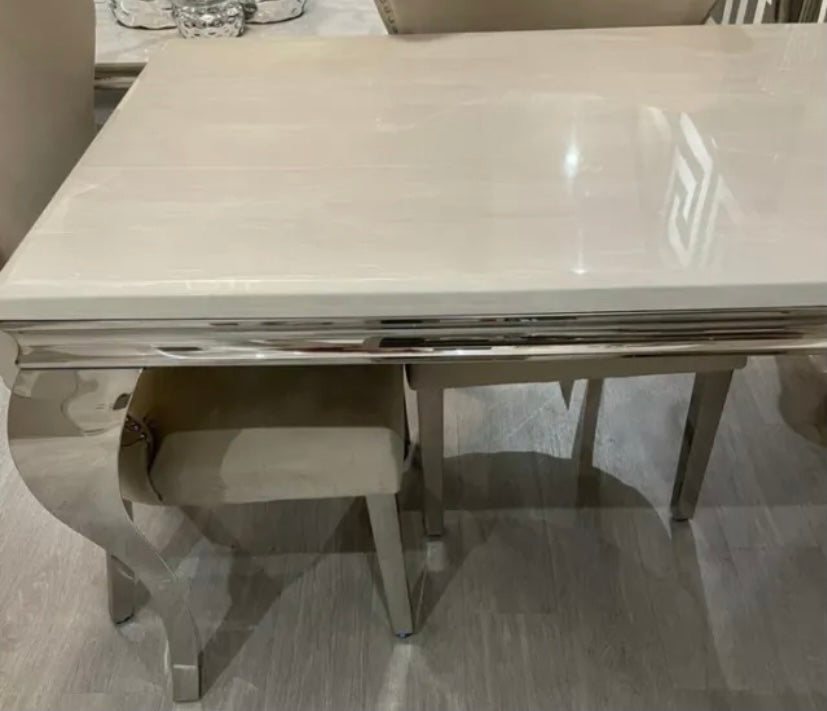Louis Cream Marble & Chrome / Stainless Steel Dining Table