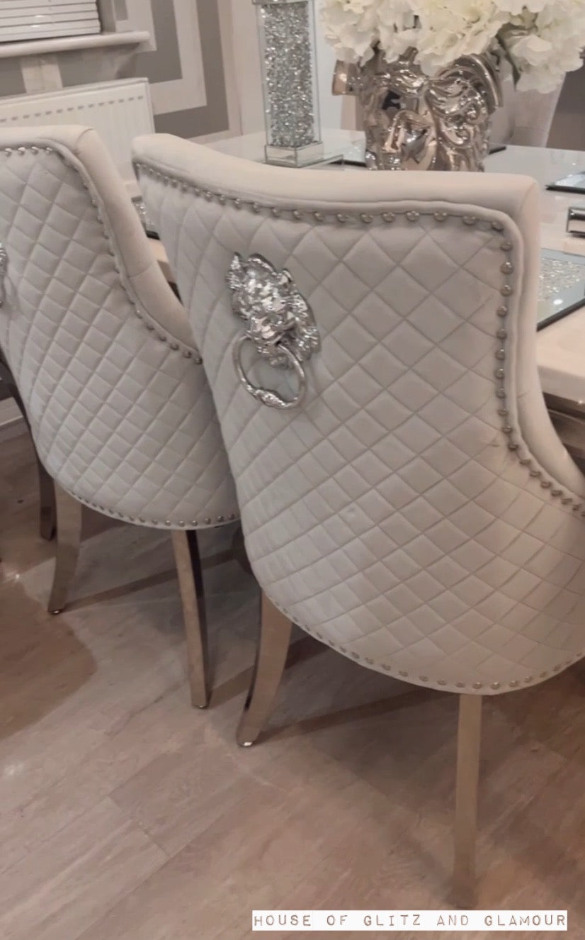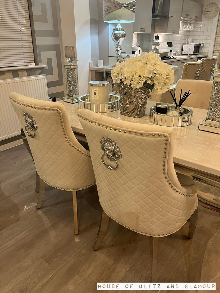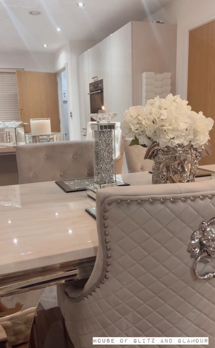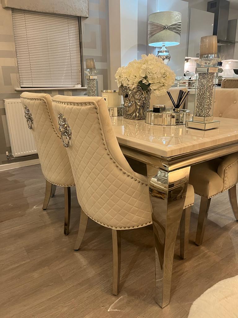 Louis Cream Marble & Chrome / Stainless Steel Dining Table