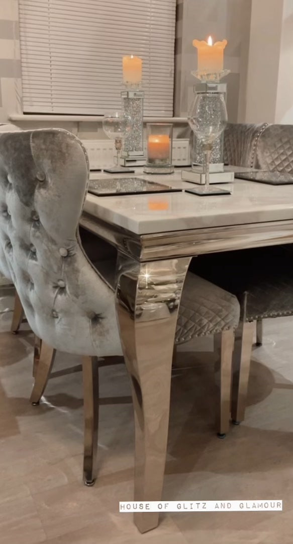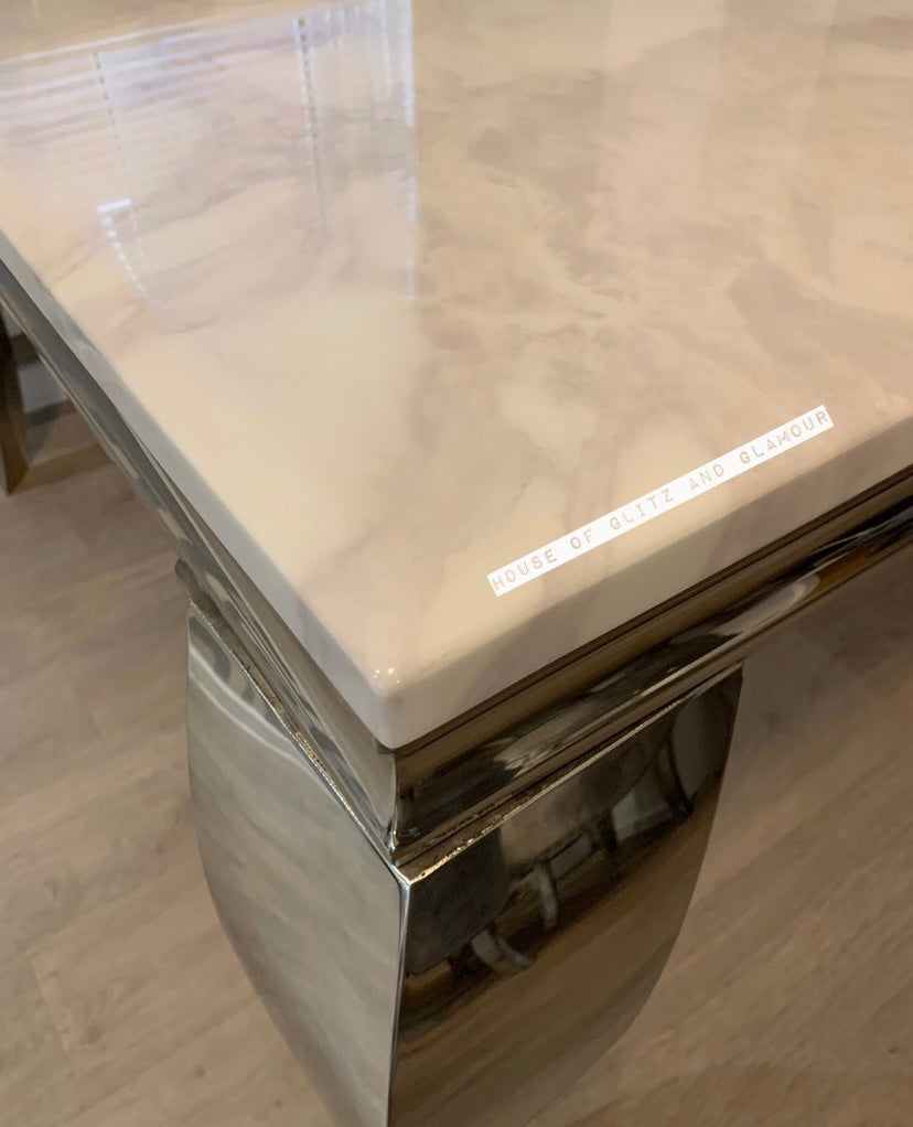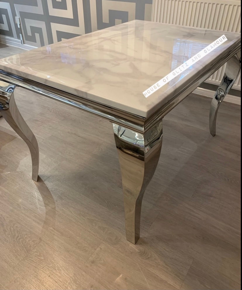1.5m Louis White Marble & Stainless Steel Dining Table