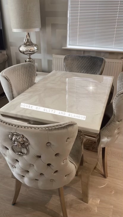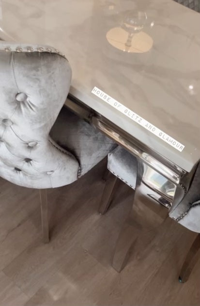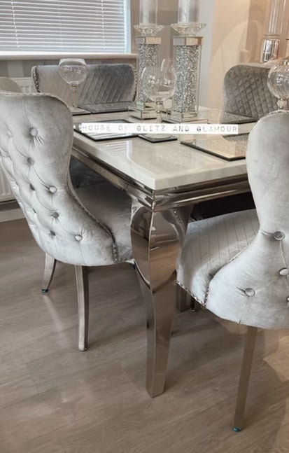 1.5m Louis White Dining Table + 4 Tufted Knocker Back Chairs