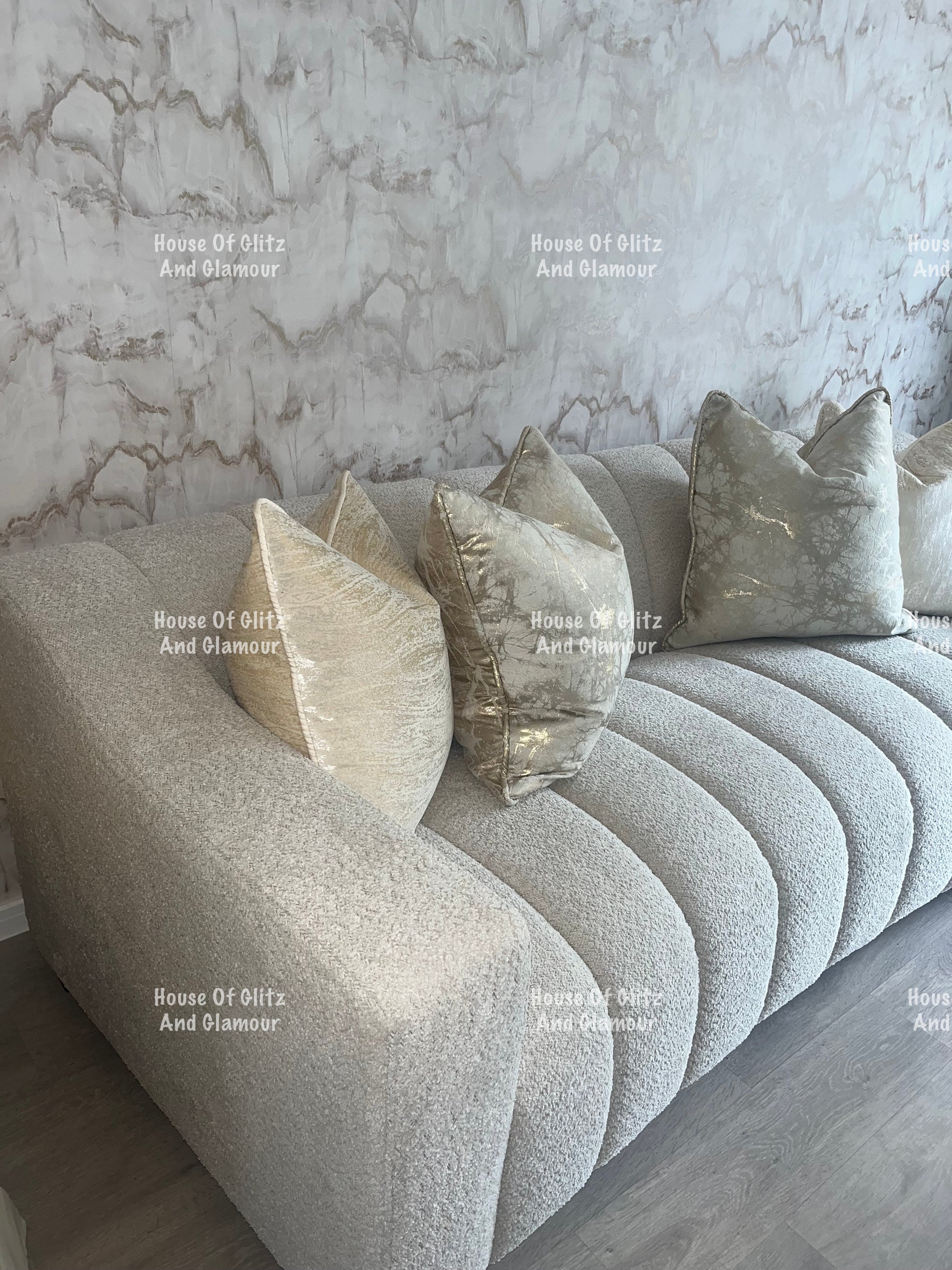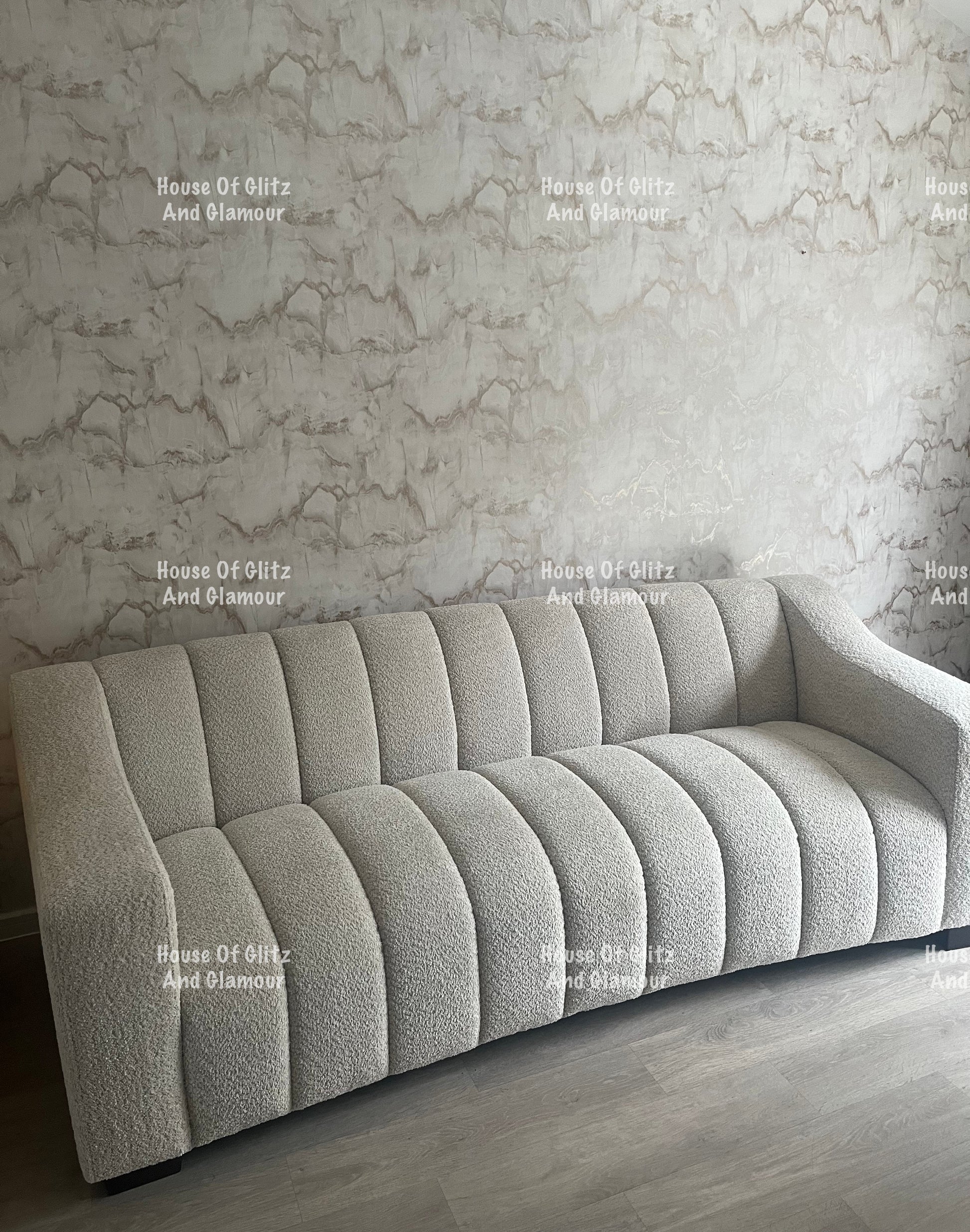 Designed for comfort and durability; the Alexa sofa is crafted from a durable wooden frame, the highest quality foam padding and finished in the soft textured boucle fabric.