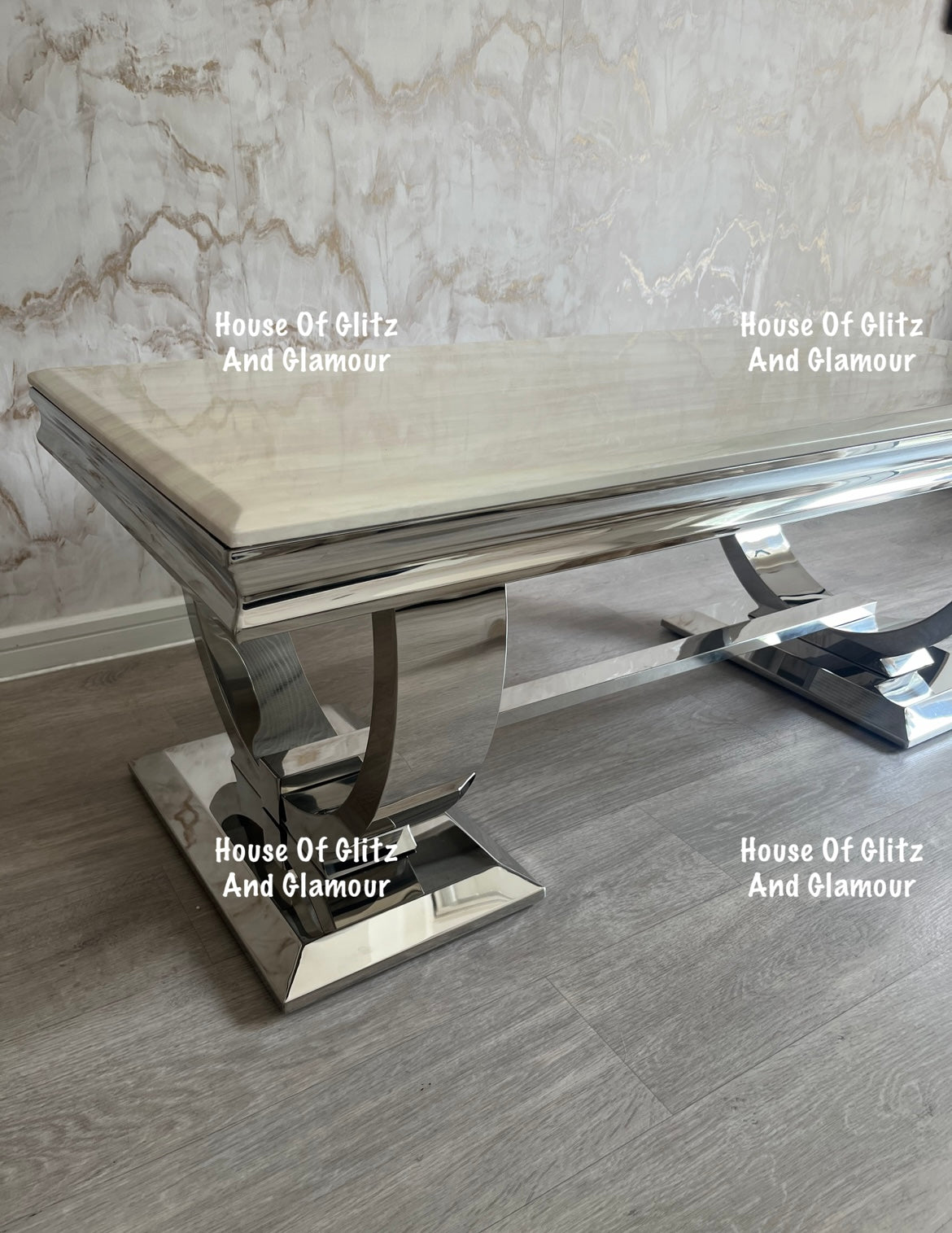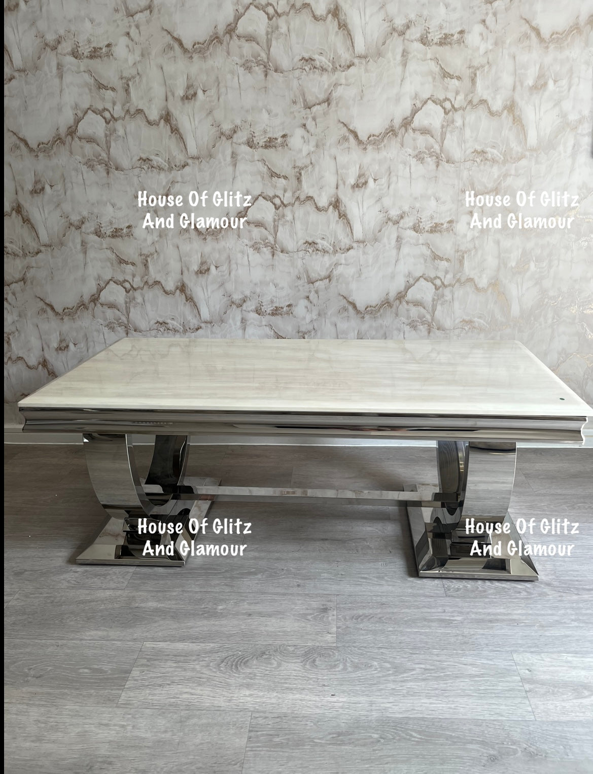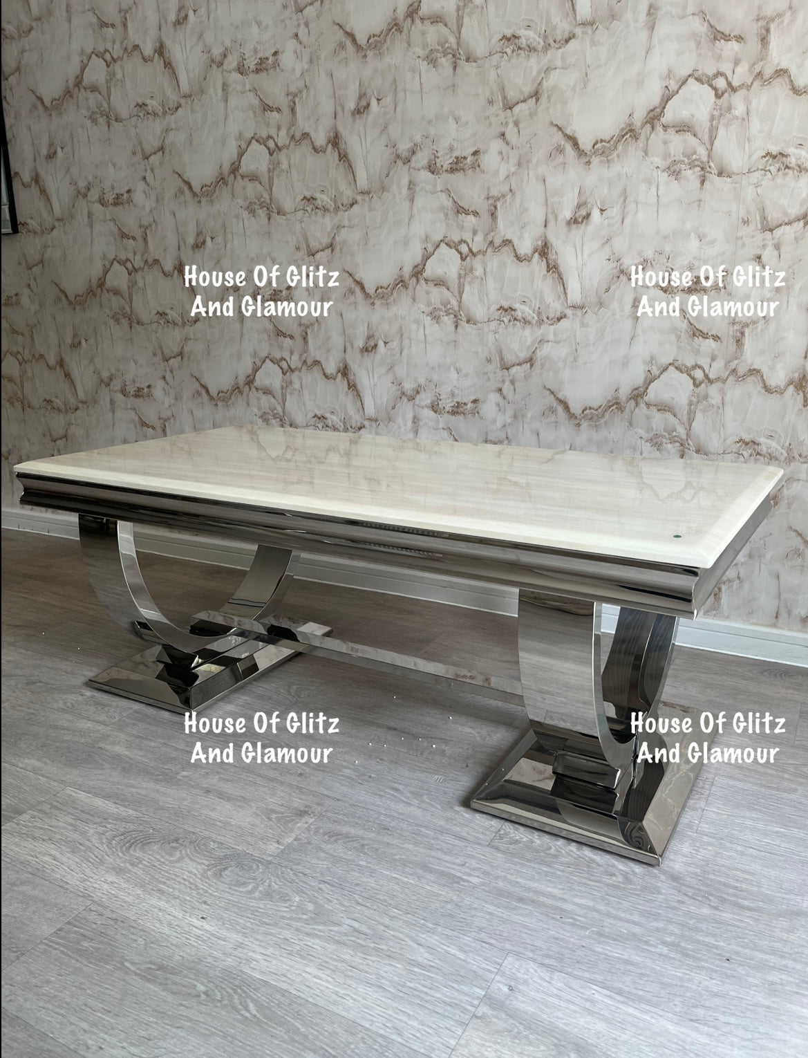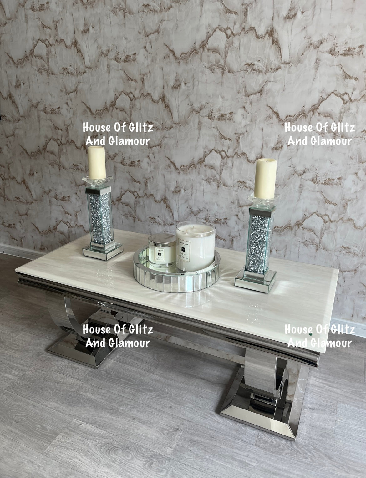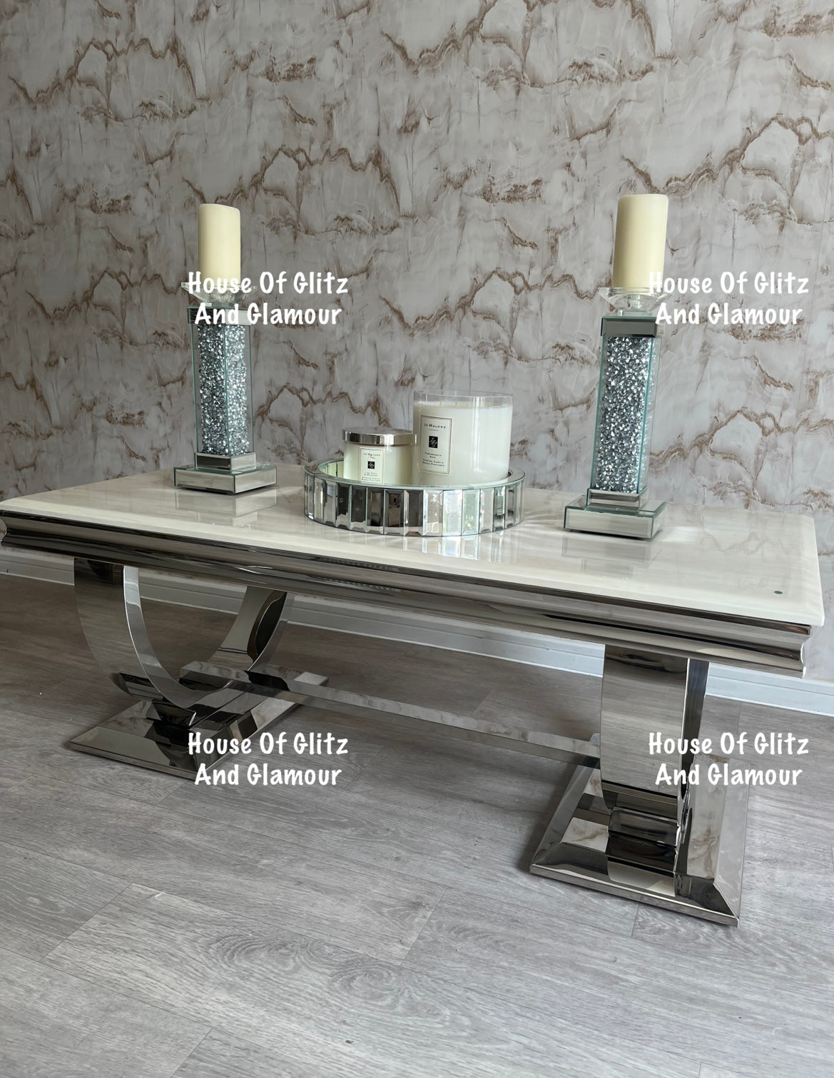Arianna Cream Marble & Stainless Steel Circular Base Coffee Table 120cm x 60cm x 42cm