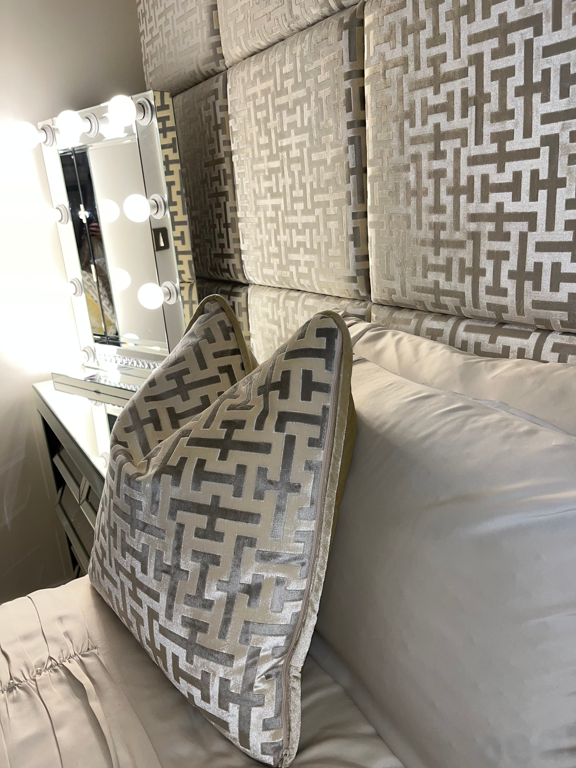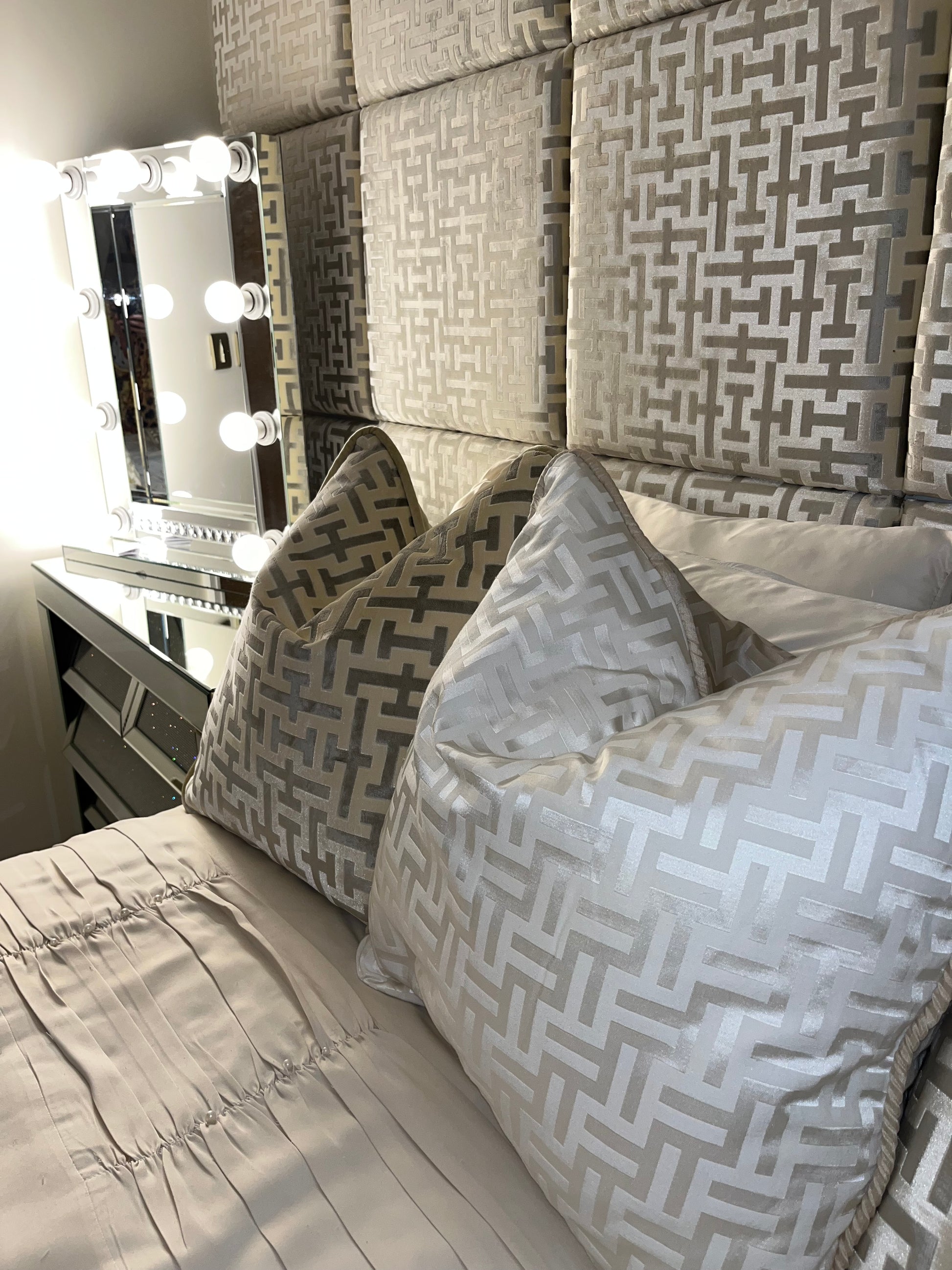 Our Aztech cushion is handmade to order by our in house team at House of Glitz and Glamour.