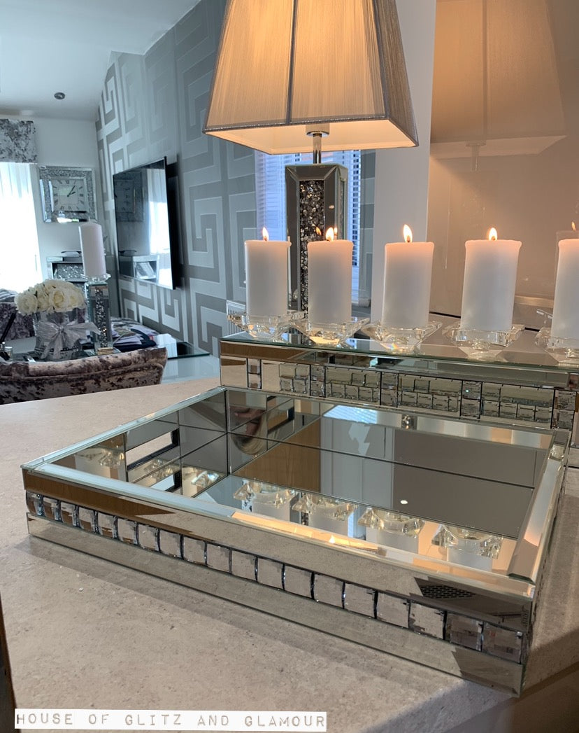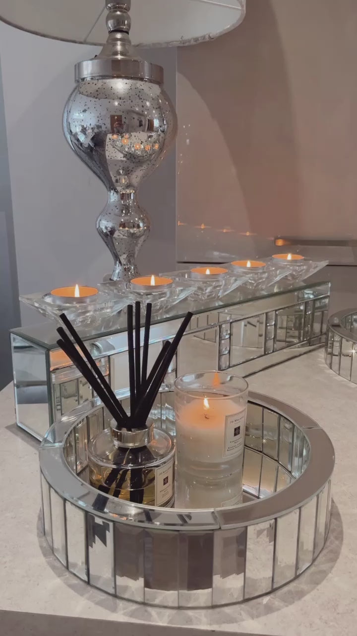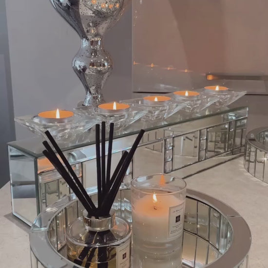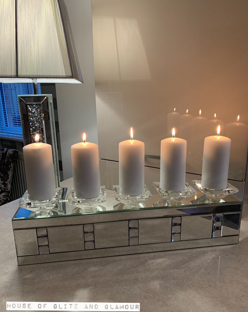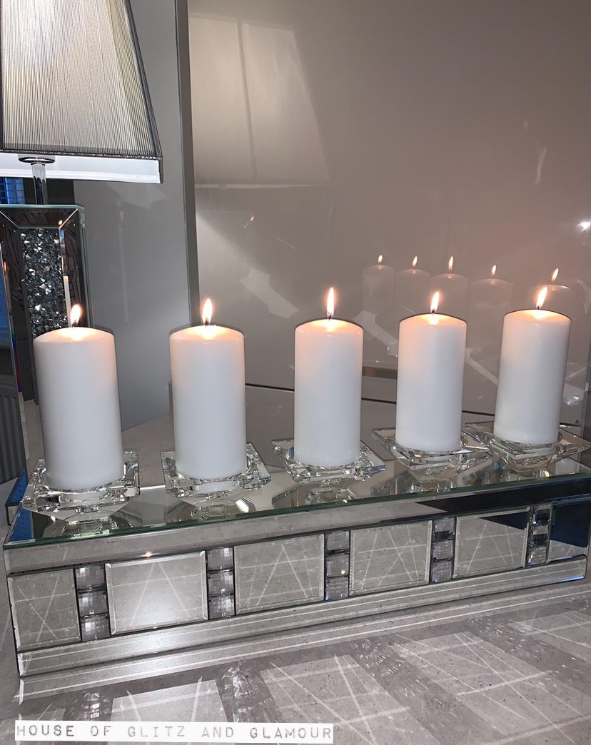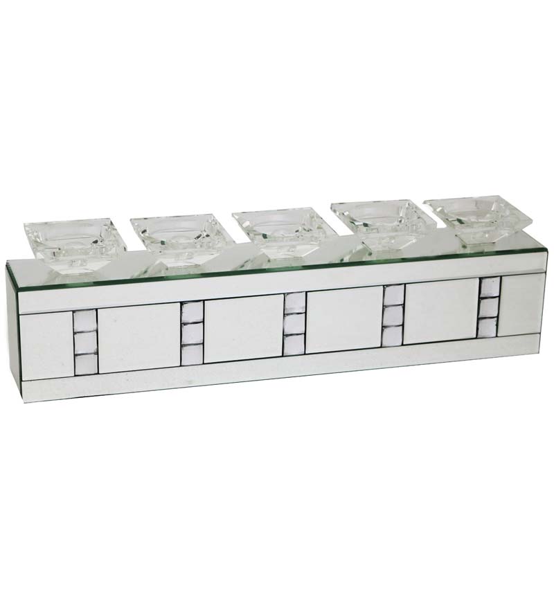 Silver Mirror Crystal 5 Piece Candle Holder
