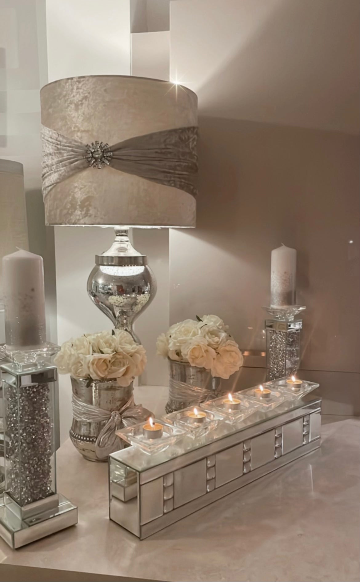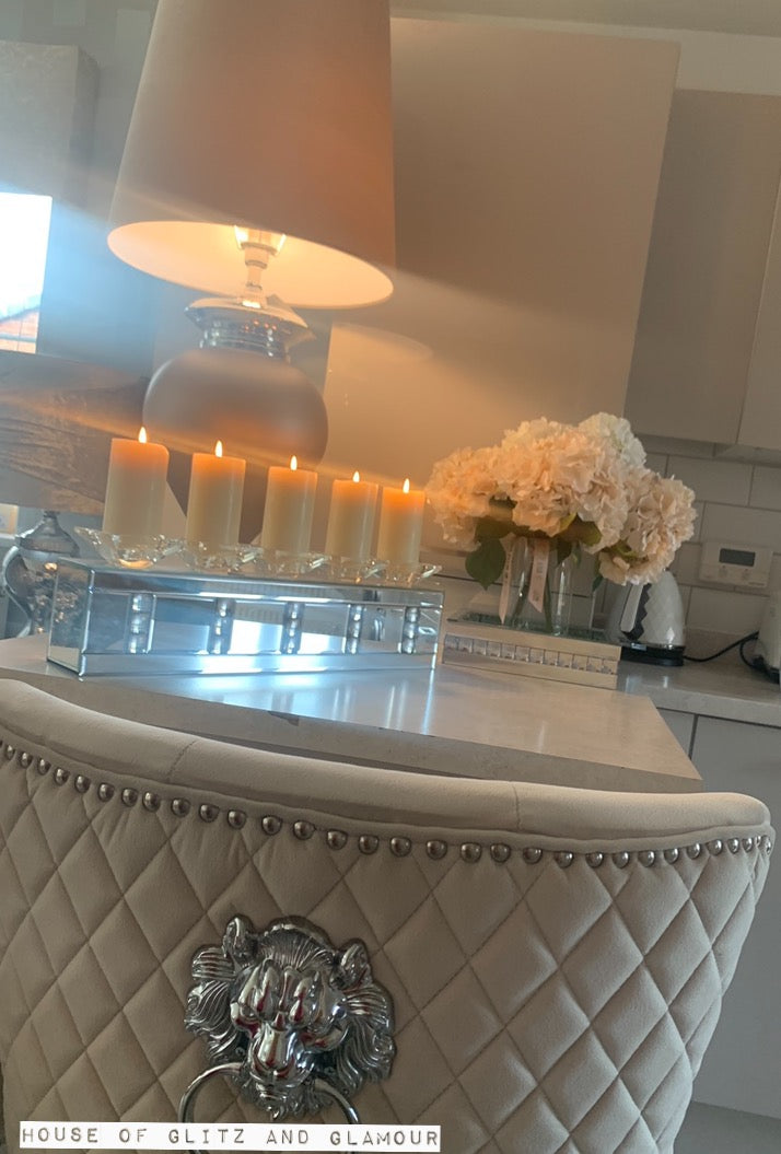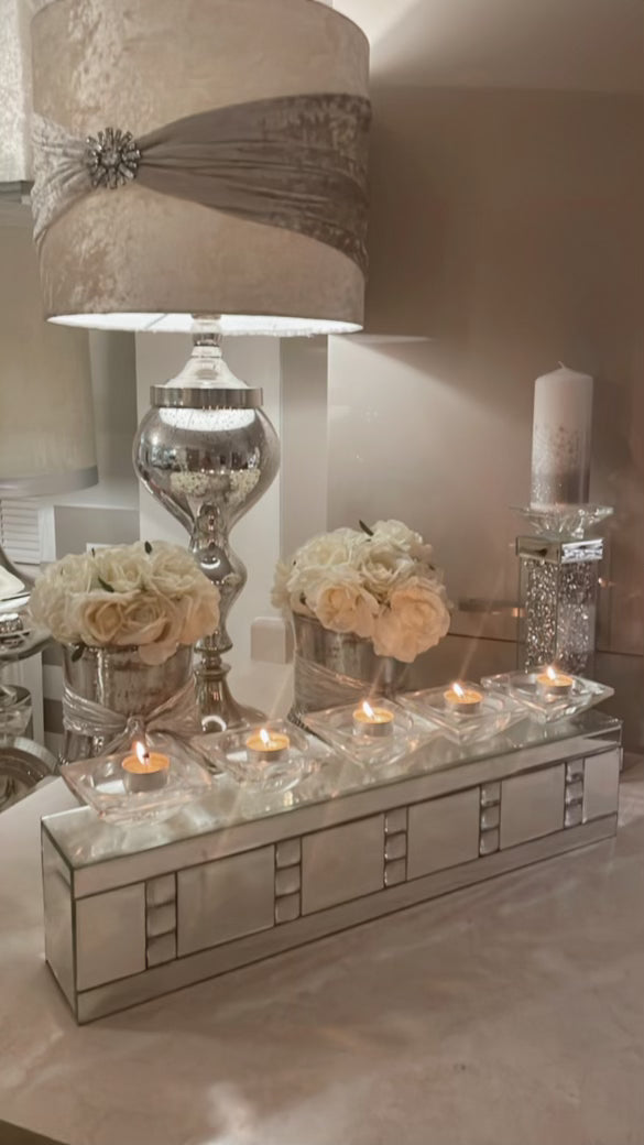 This Silver crystal 5 Candle Holder combines high style texture with contemporary appeal to create a uniquely style accent.