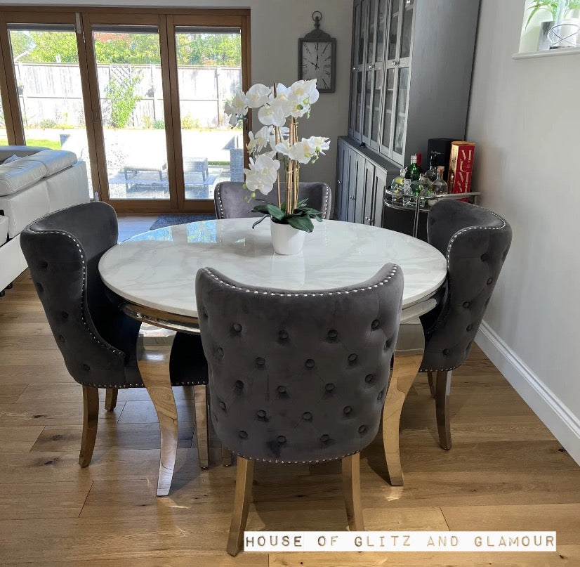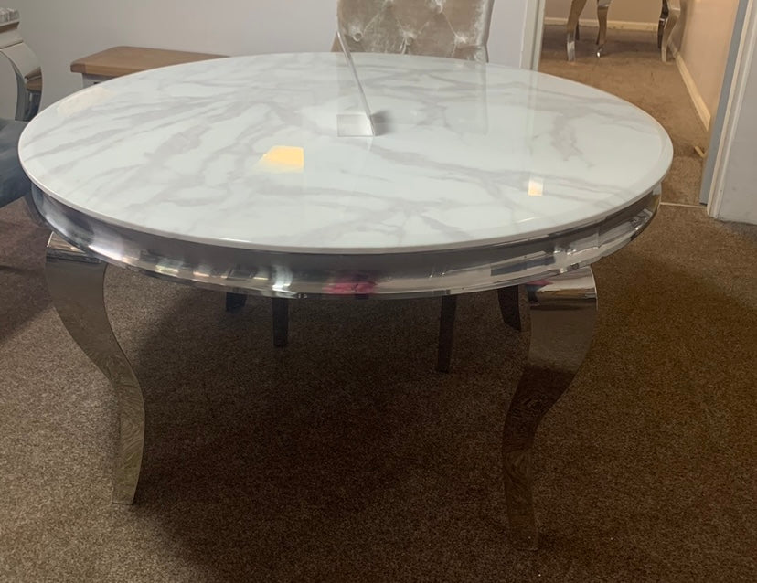 1.3m Louis Round White Marble & Stainless Steel Dining Table