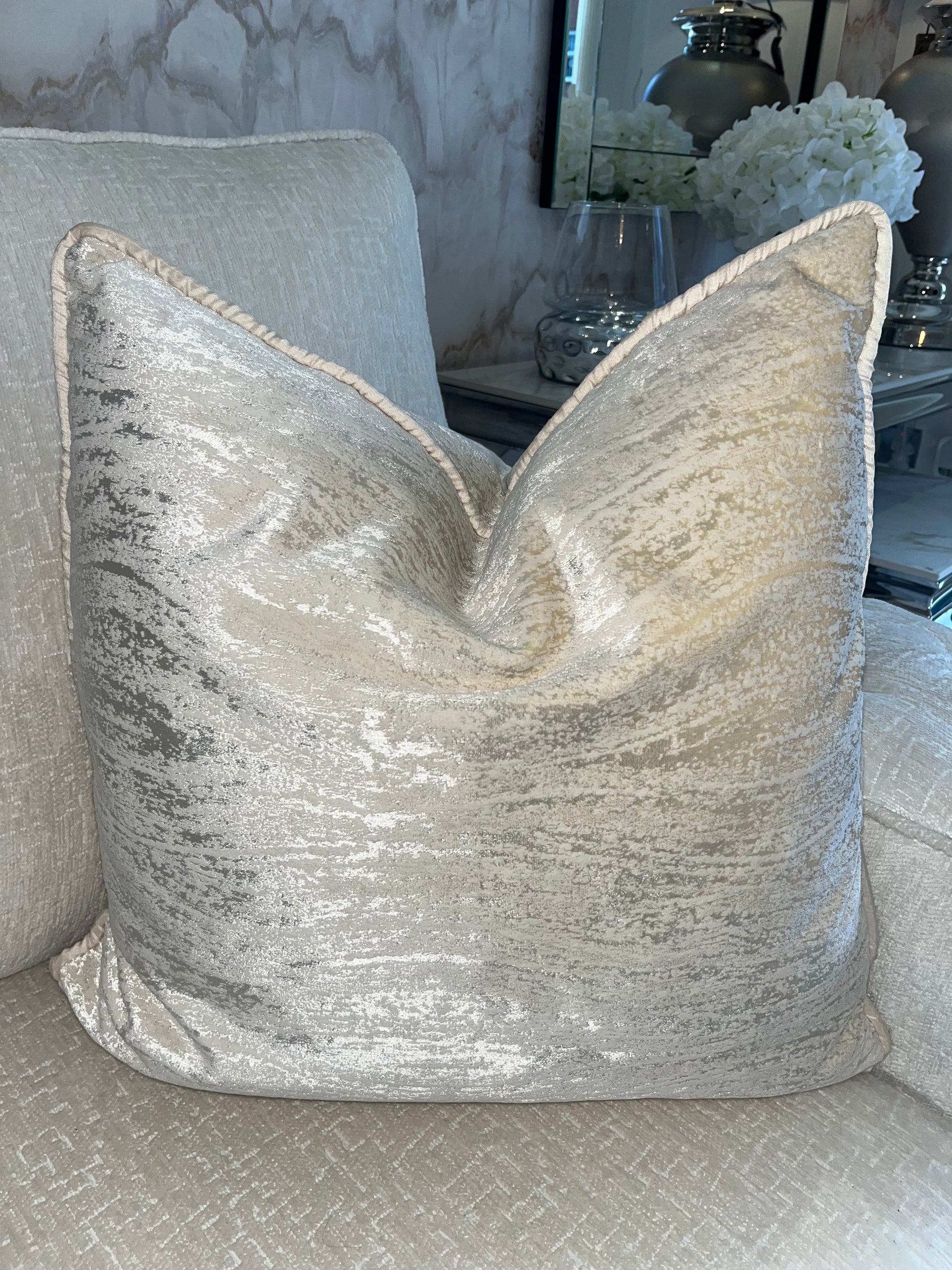 Our Cream Velvet & Champagne cushions are handmade to order by our in house team at House of Glitz and Glamour.