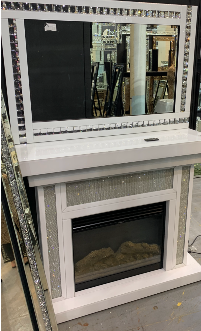 Glitz And Glamour White Fireplace & Electric Fire with Remote Control