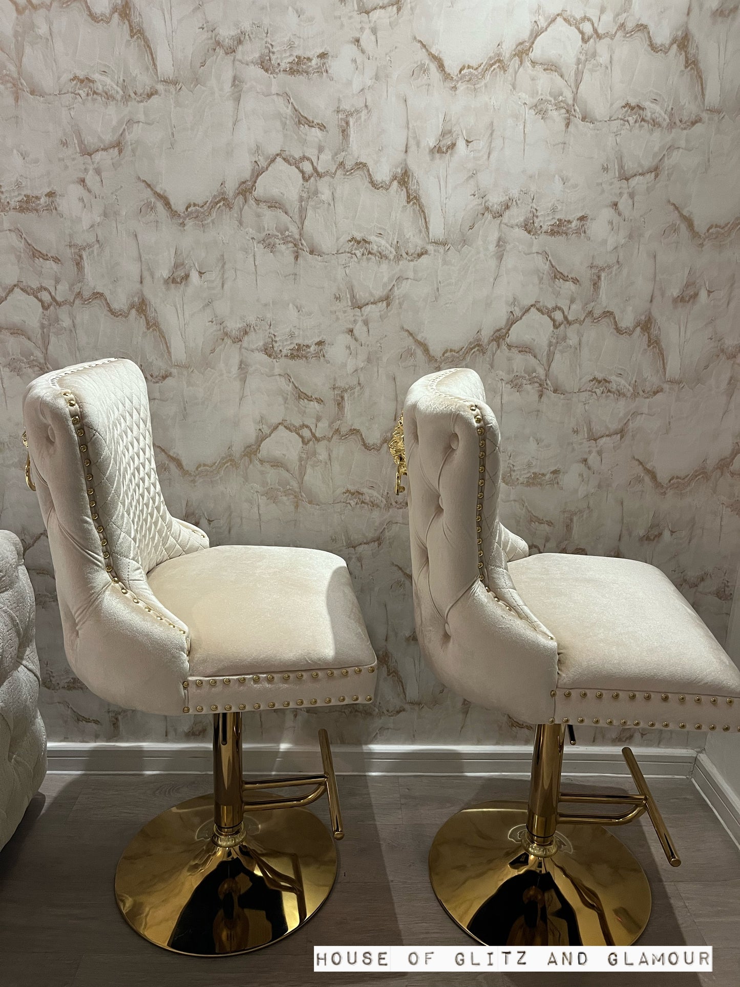 Giselle Cream & Gold Velvet Lion Knocker Bar Stool.