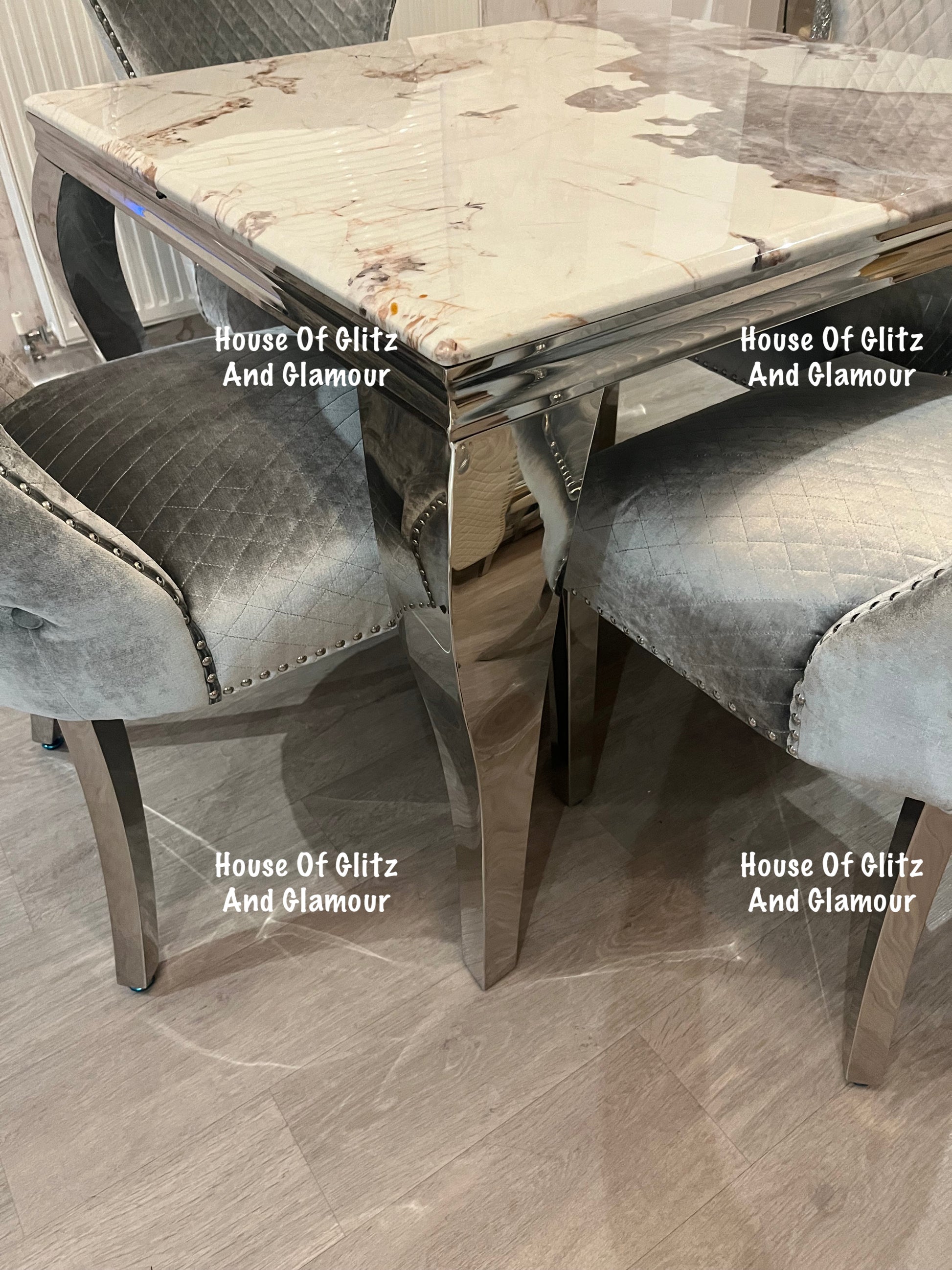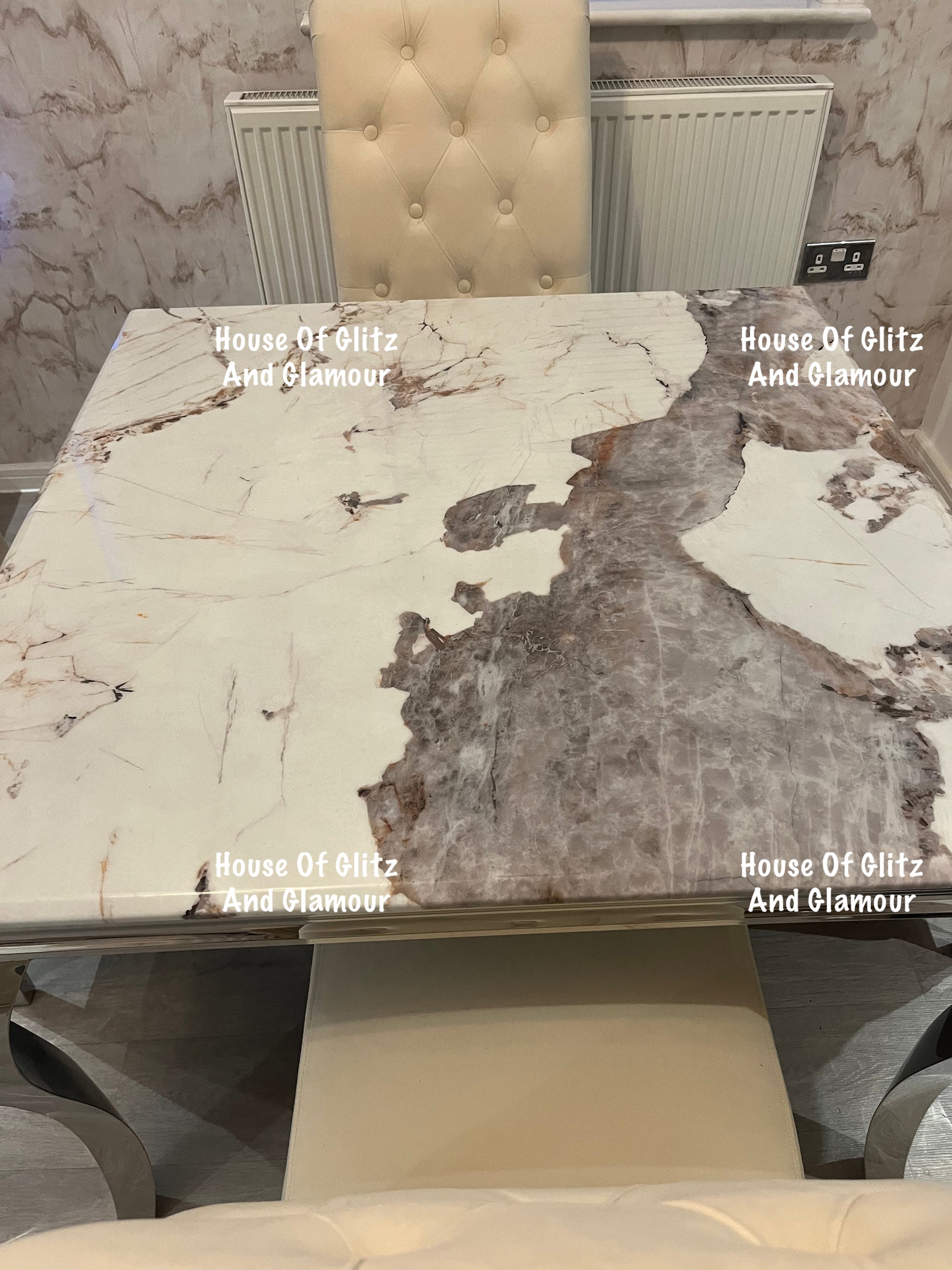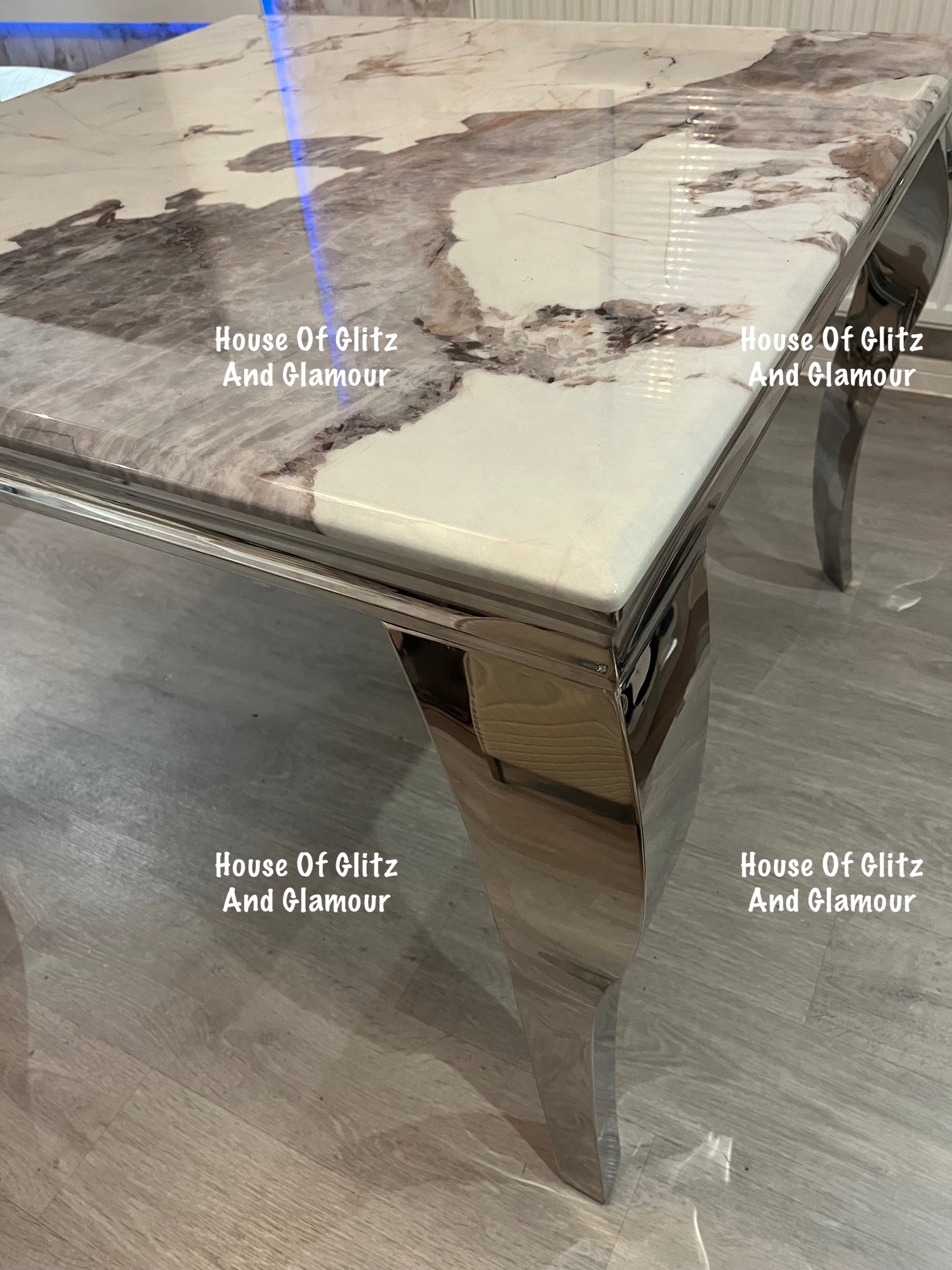 Louis Cream Dining Table With Chrome Legs And Pandora Marble Top