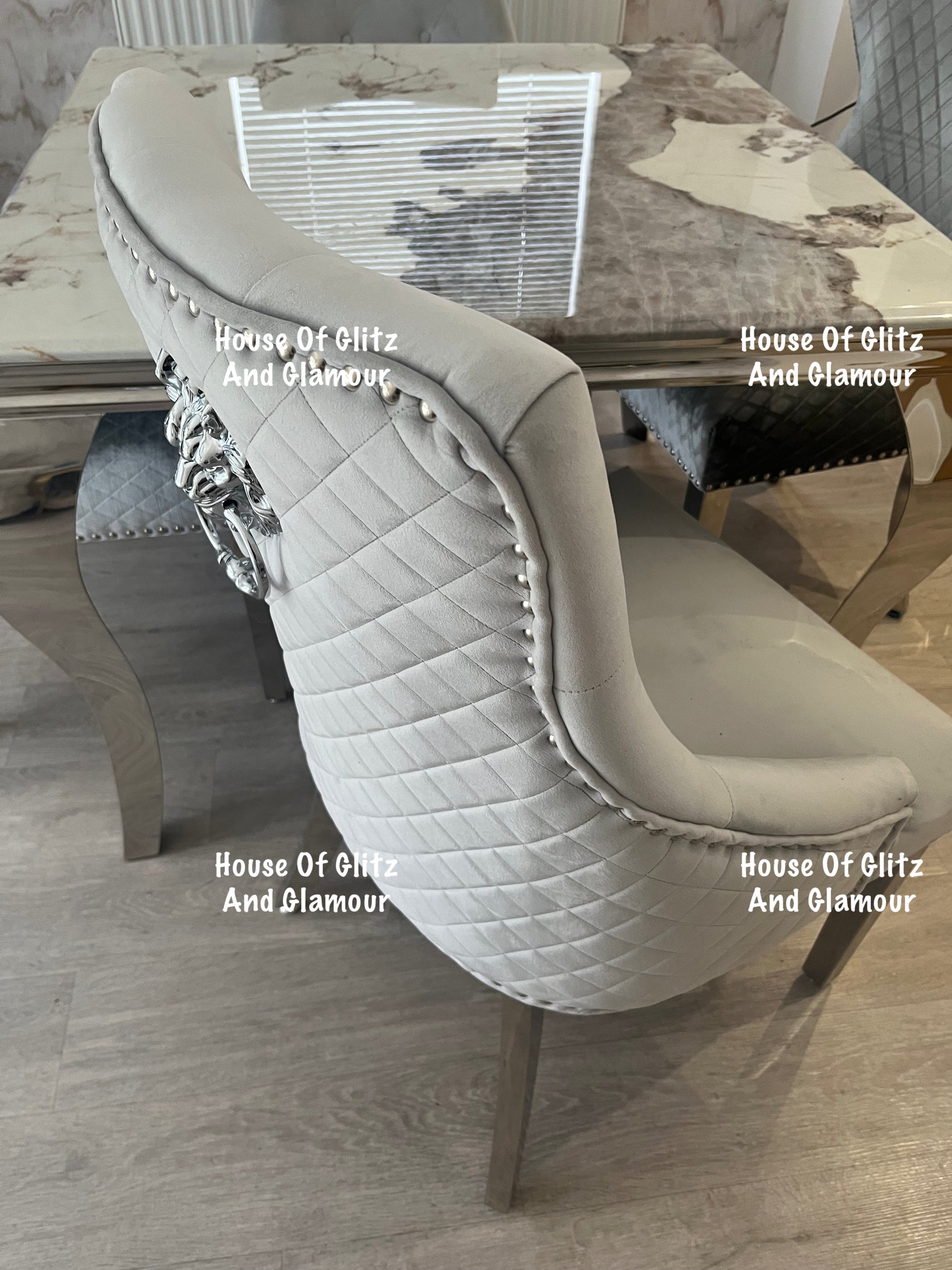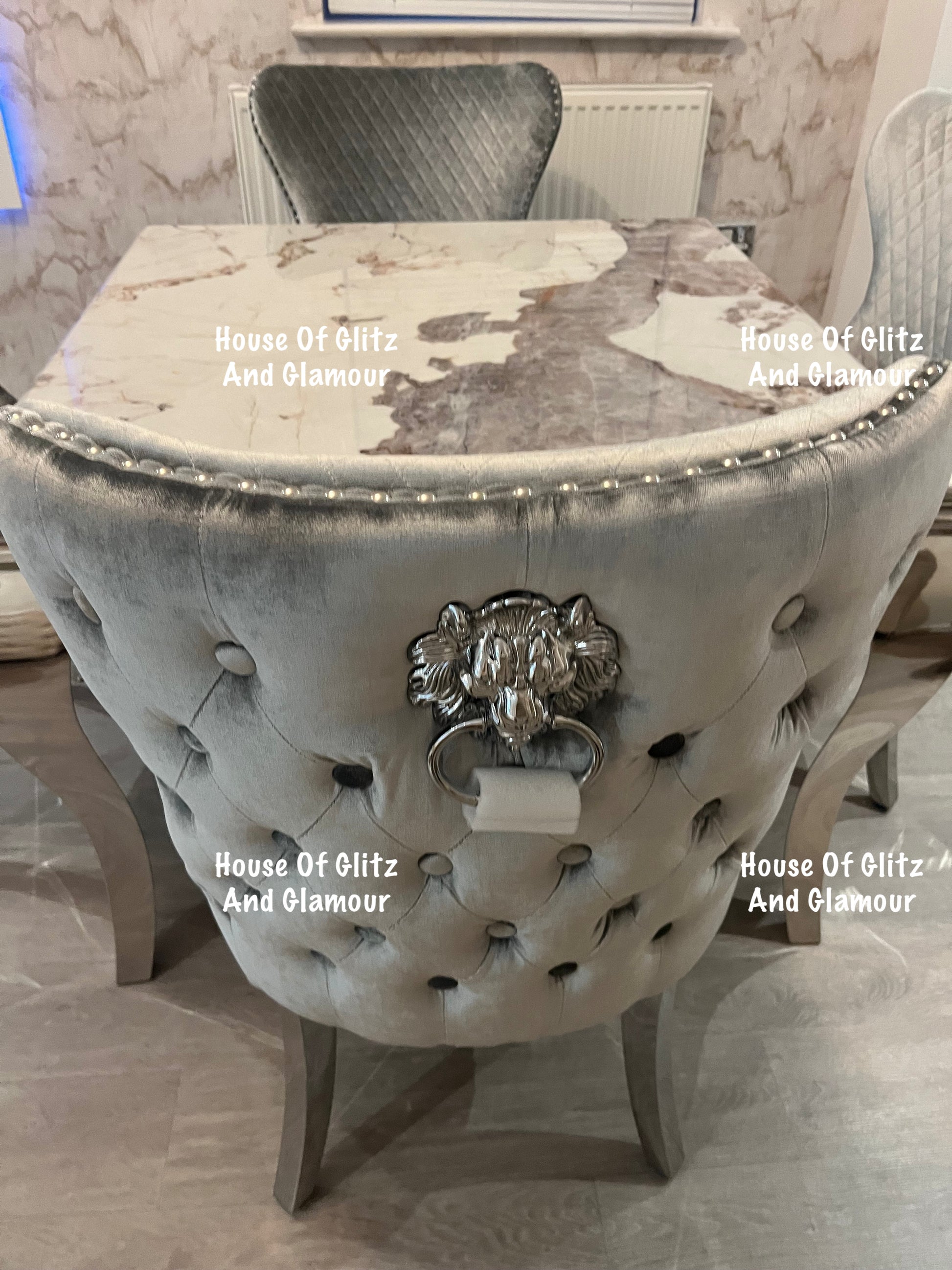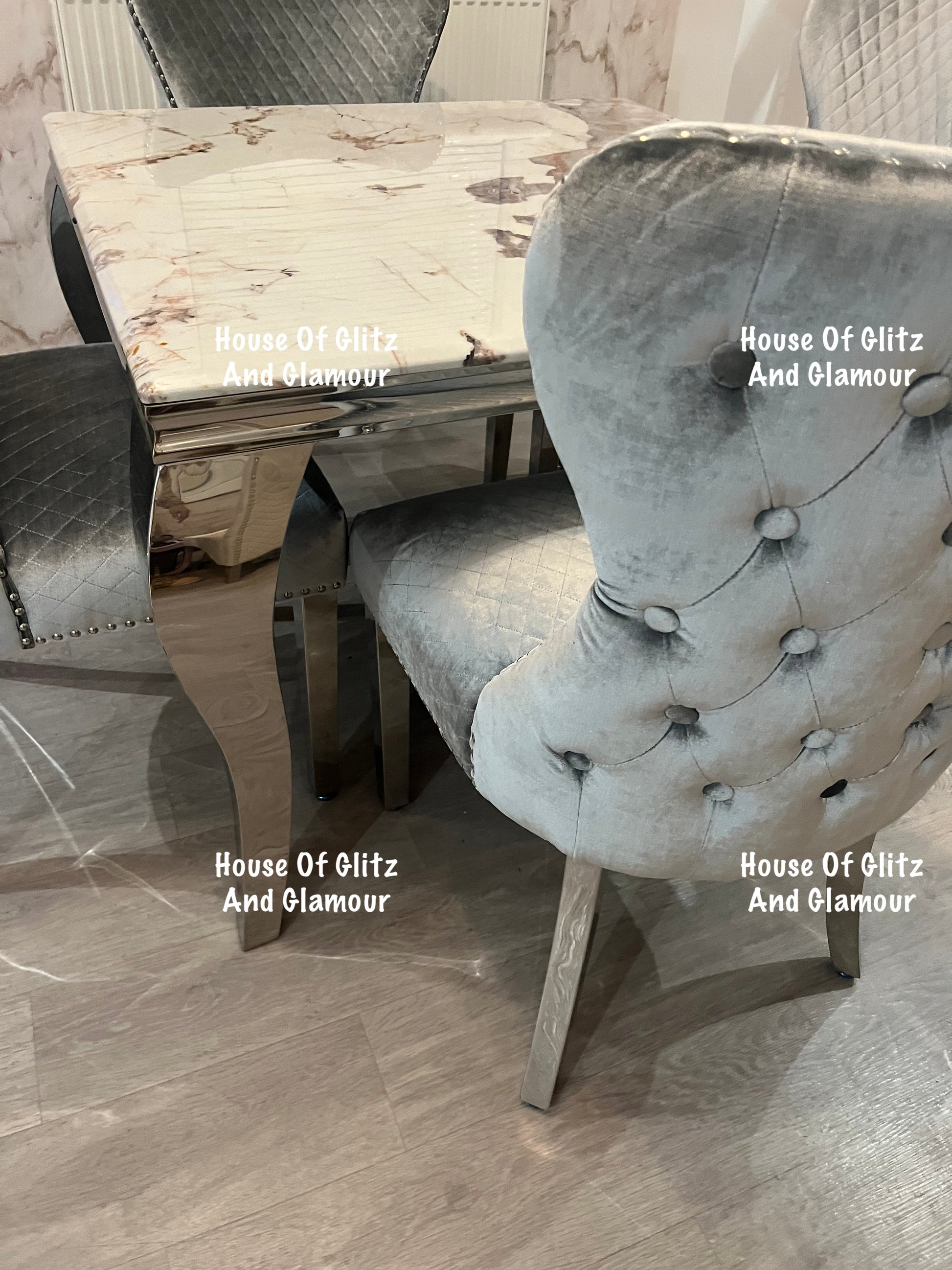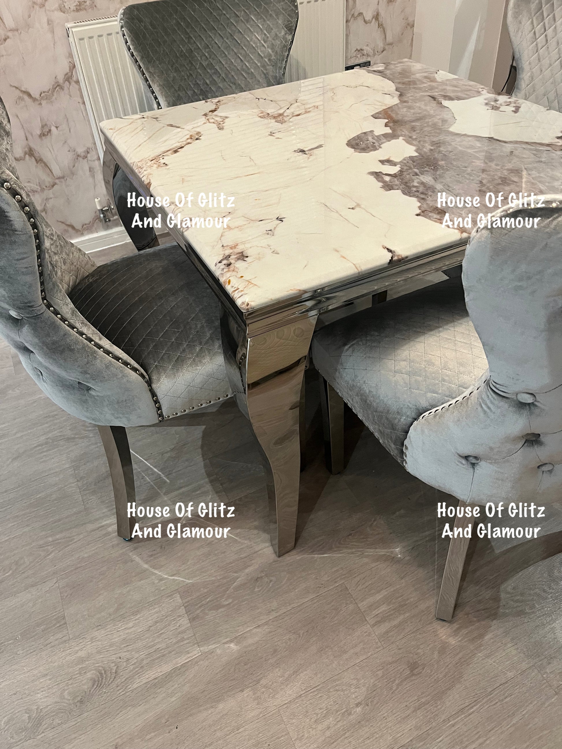 Louis Cream Dining Table With Chrome Legs And Pandora Marble Top