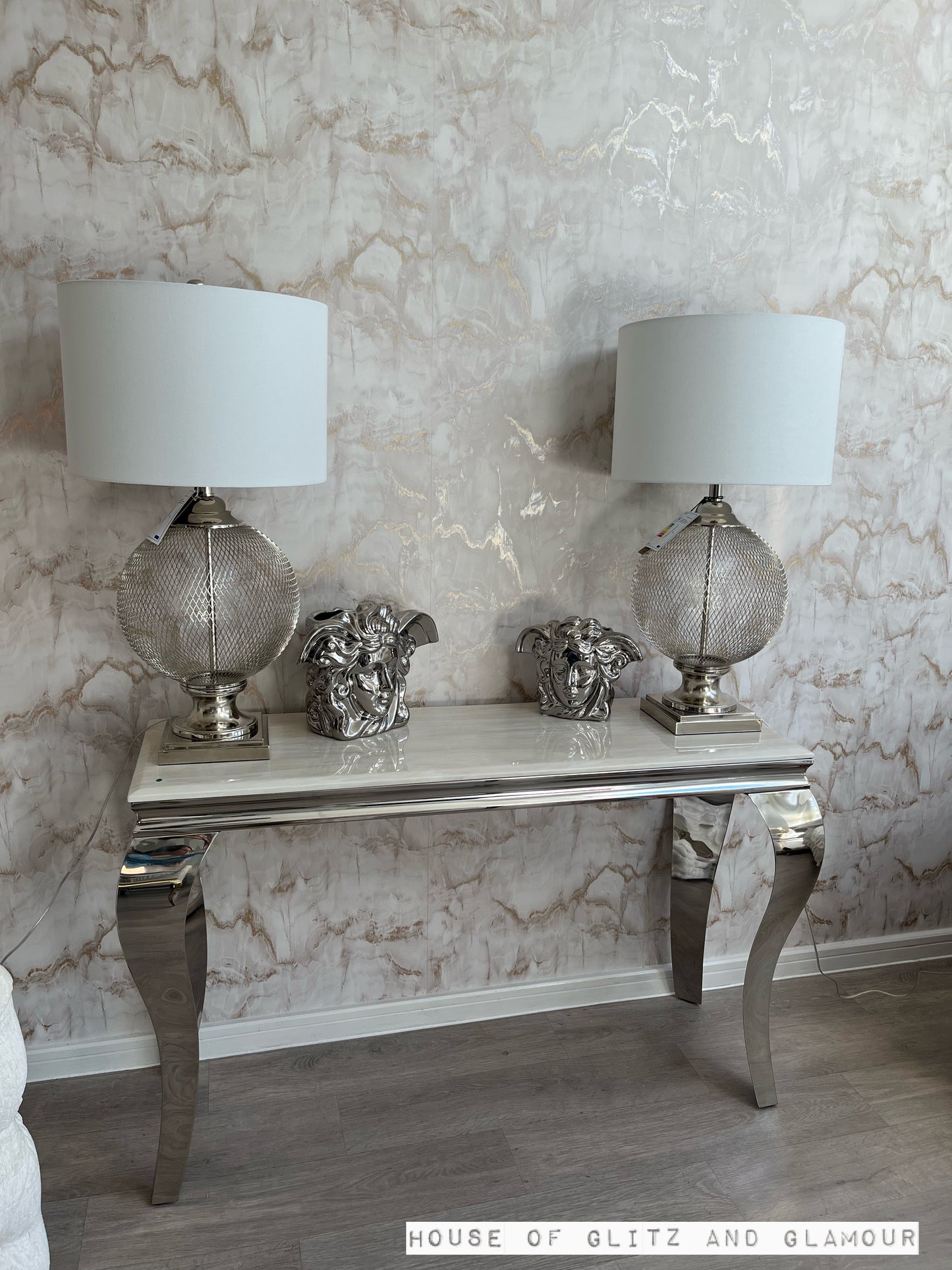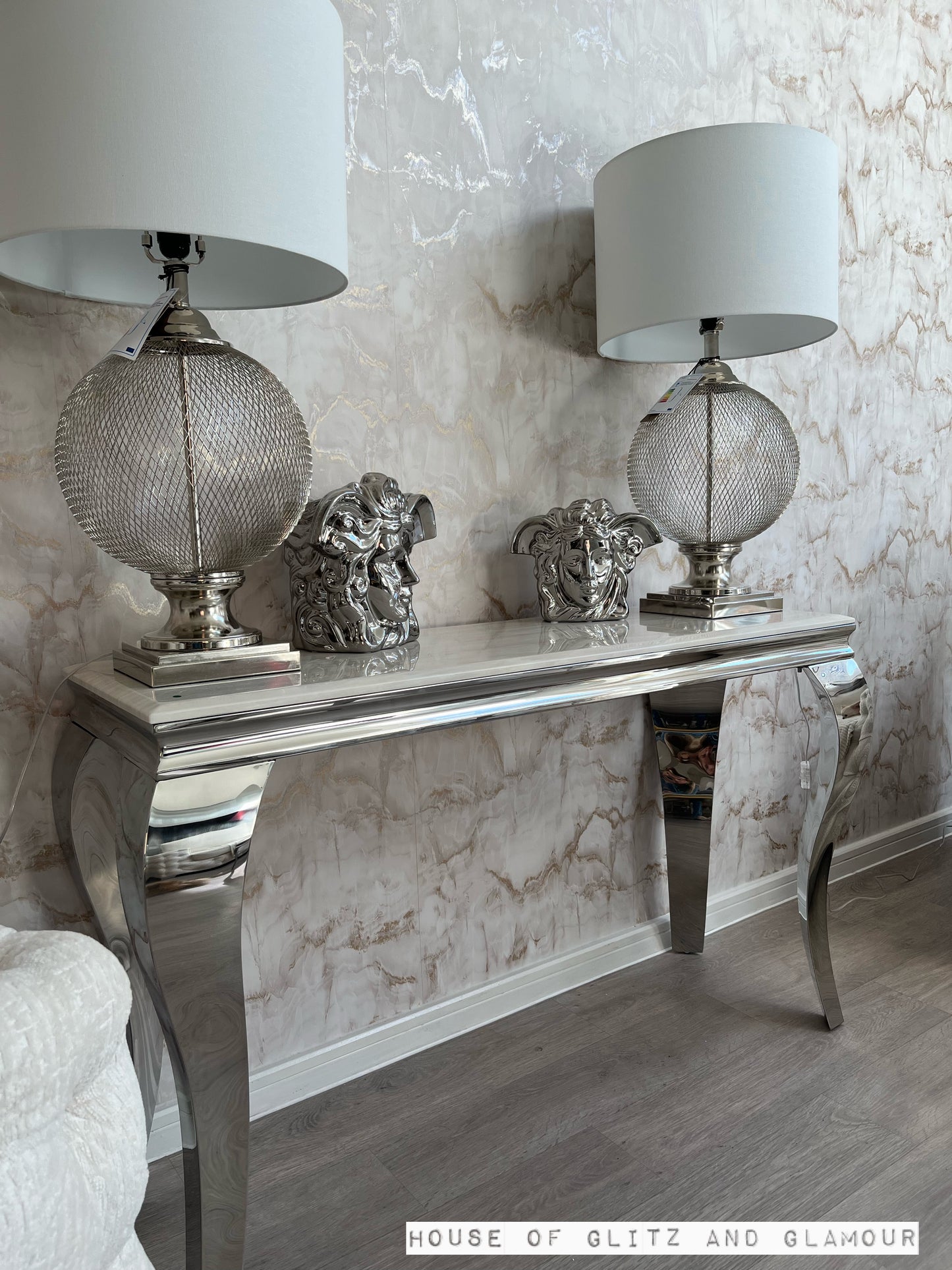 Louis Cream Marble & Chrome Console Table 120cm x 40cm x 75cm