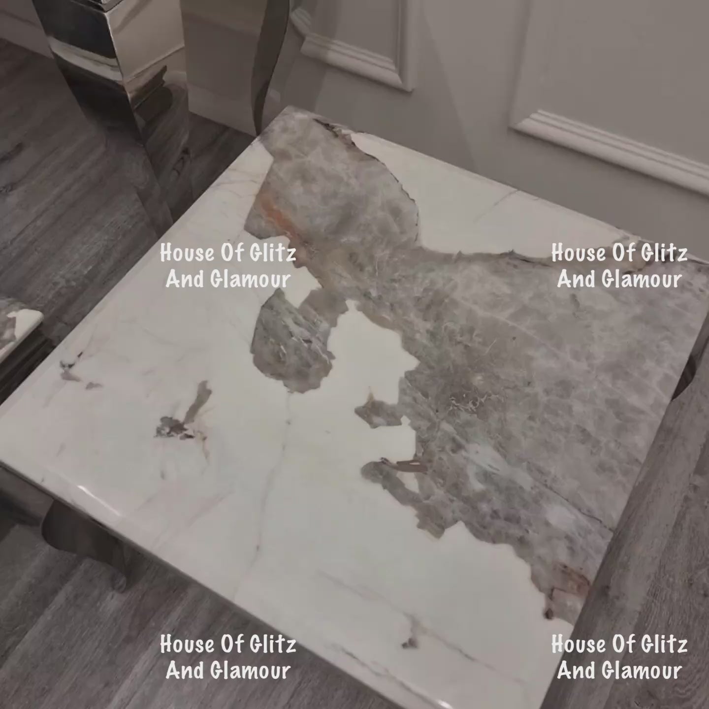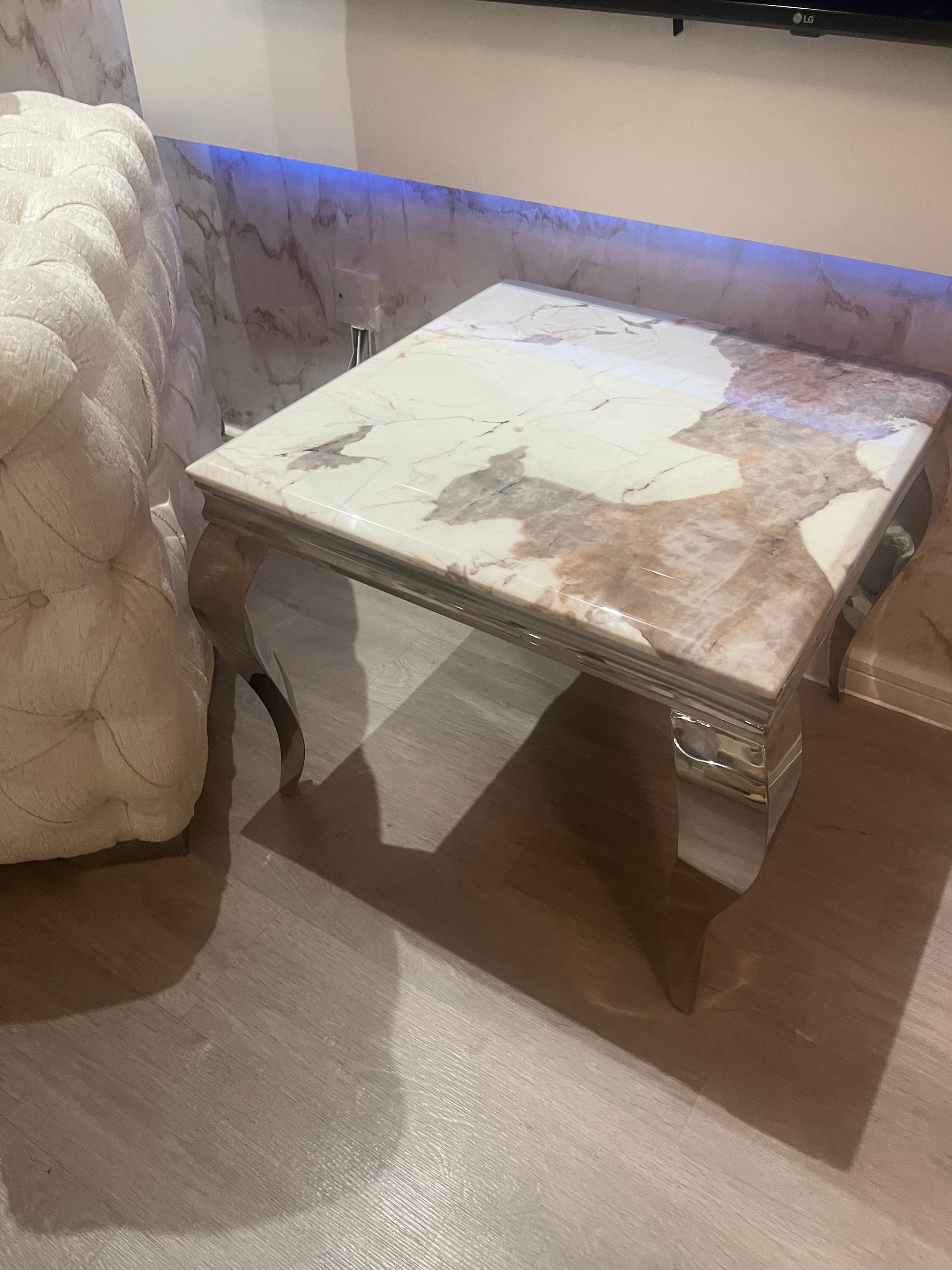Louis Cream Side Table With Chrome Legs And Pandora Marble Top (60cm x 60cm)