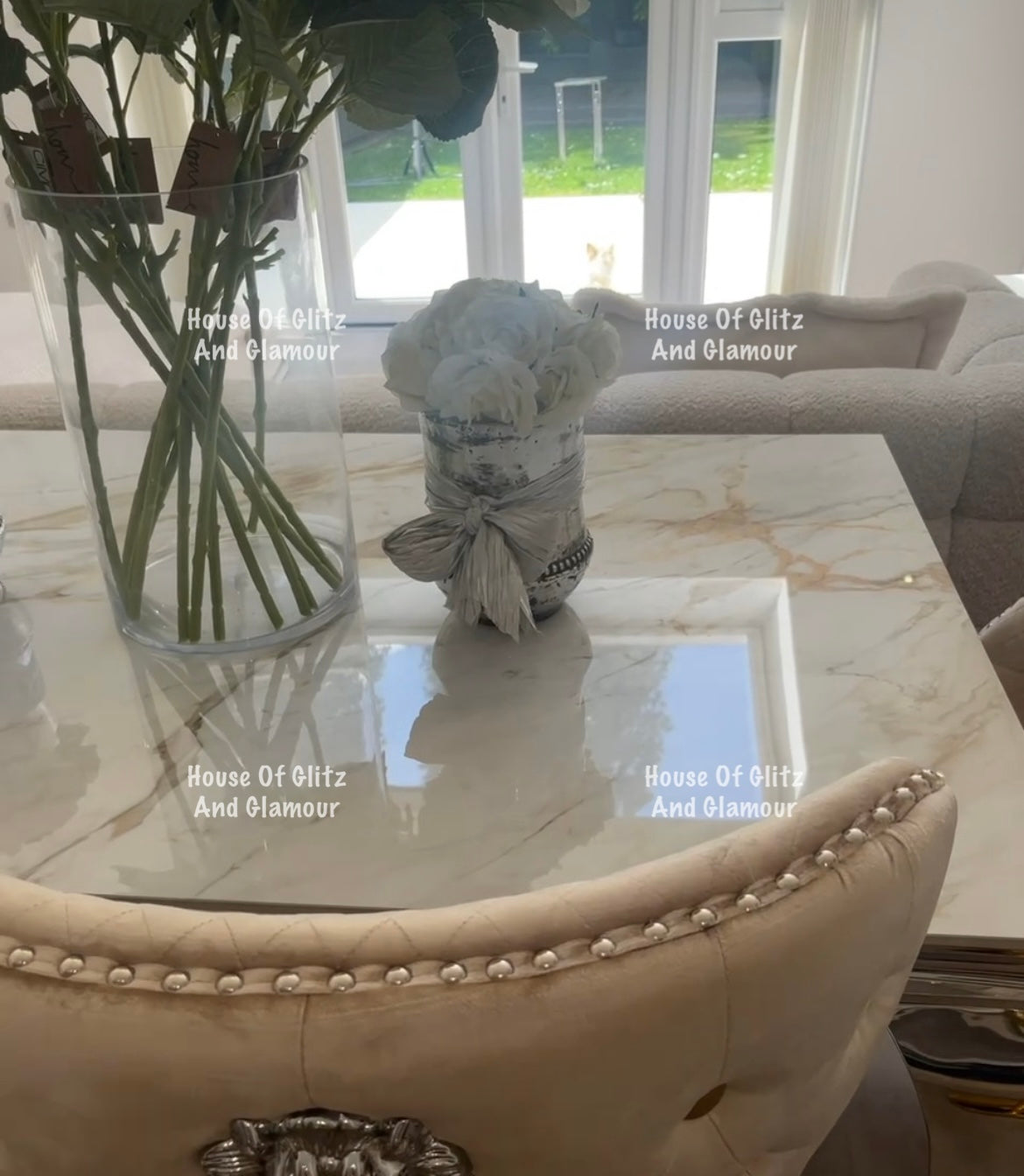 Louis Kata Gold Ceramic & Chrome Dining Table
