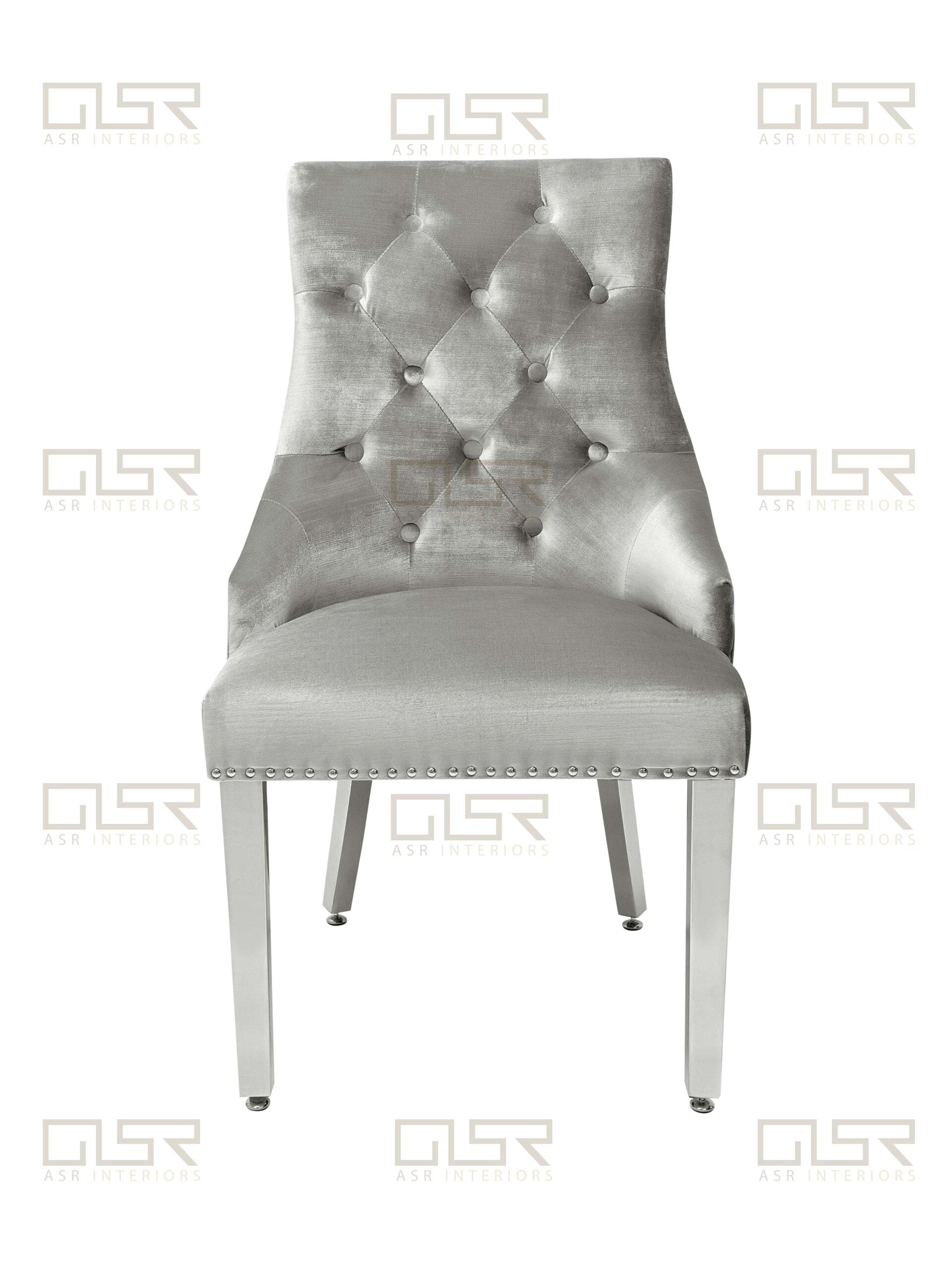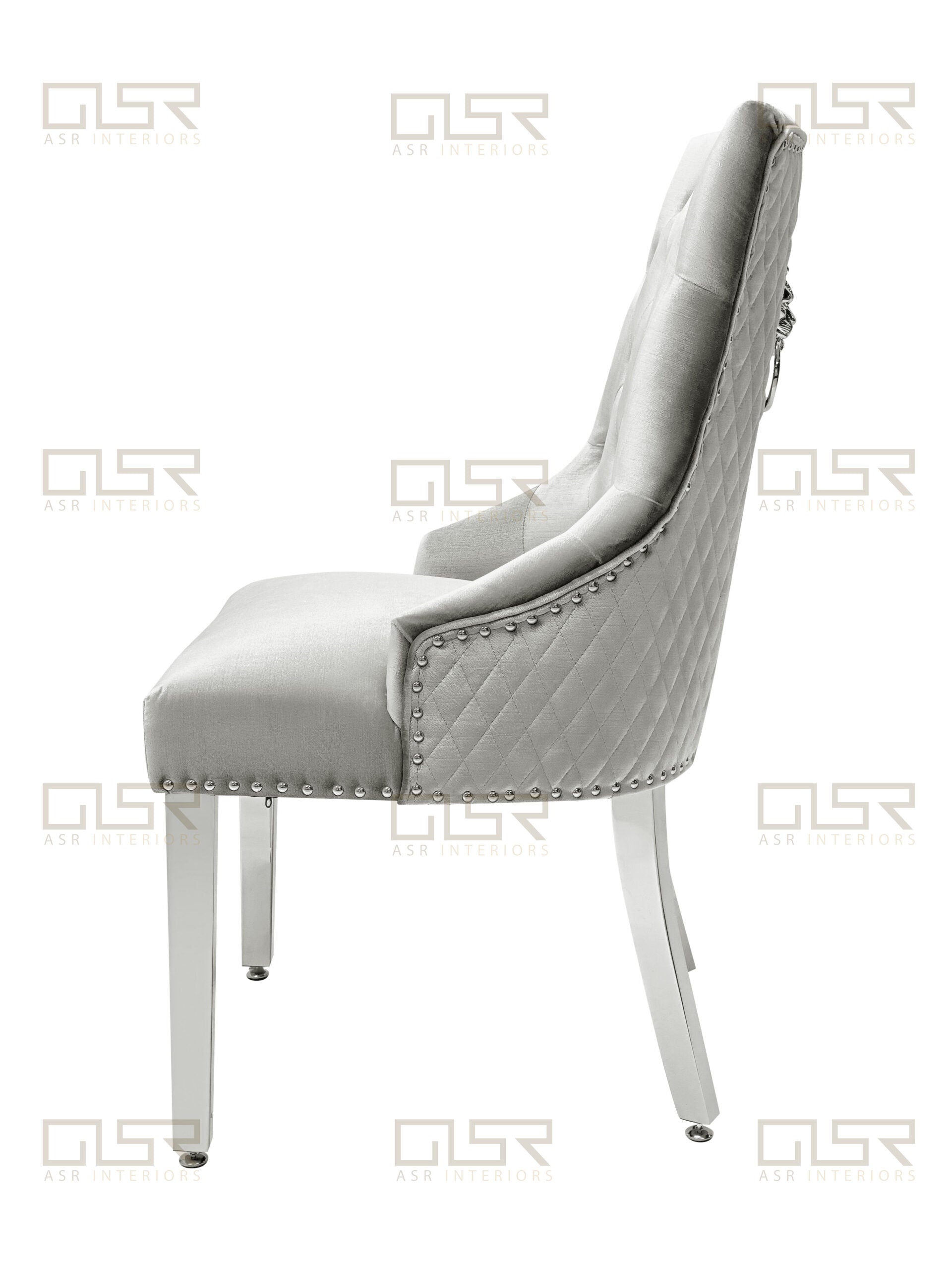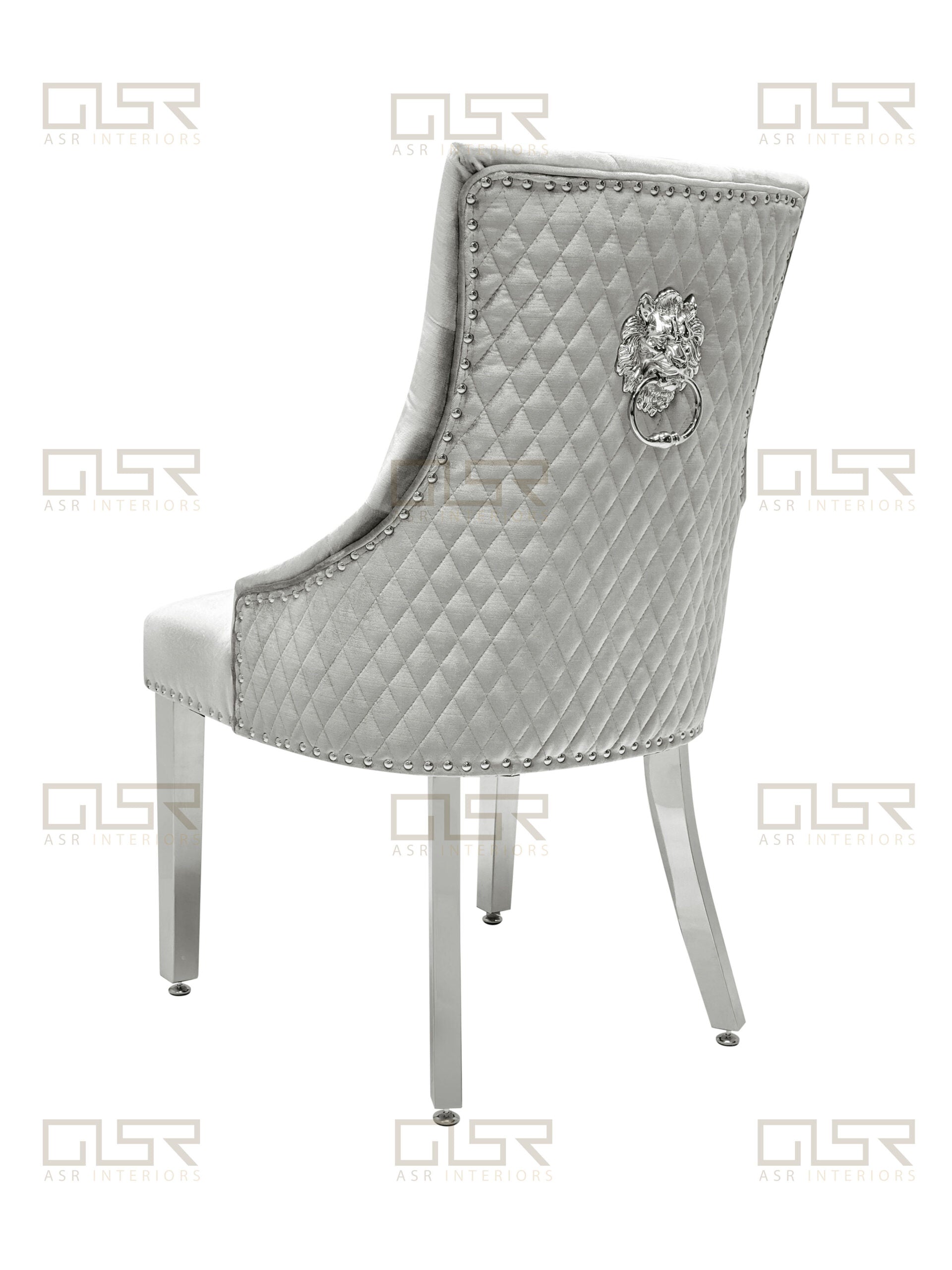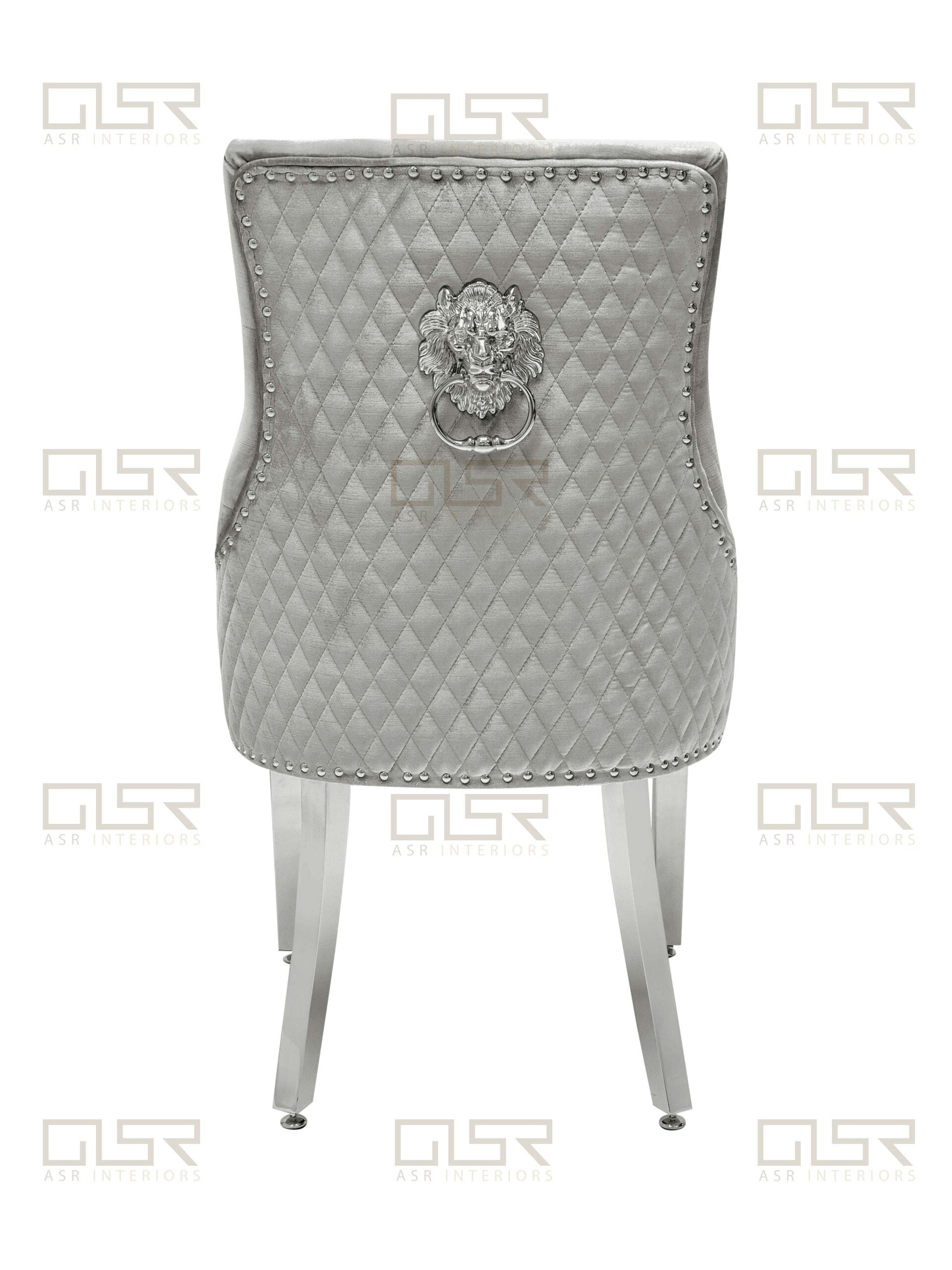 Chelsea Silver Velvet Lion Knocker Dining Chair.