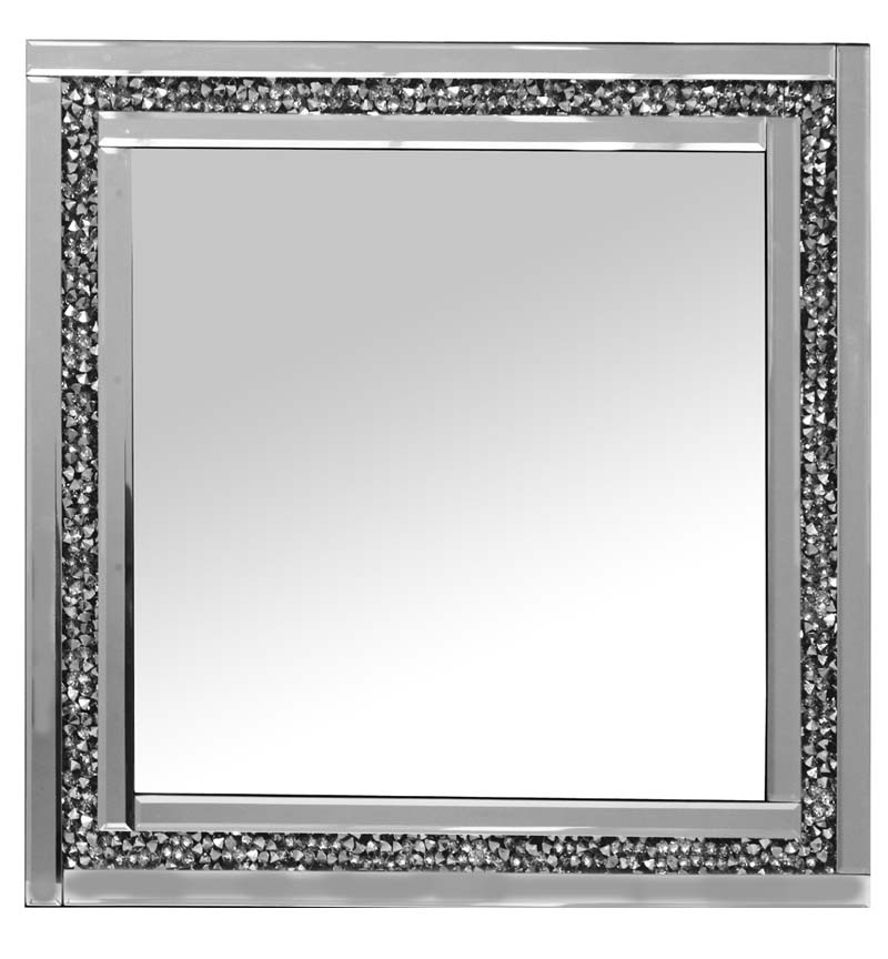 Borders filled with shining diamond like crystals , this beautiful item is made of Mirrored Glass and MDF .
