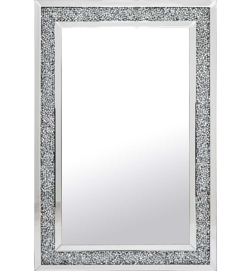 Borders filled with shining diamond like crystals , this beautiful item is made of Mirrored Glass and MDF .