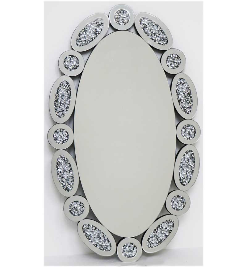 Borders filled with shining diamond like crystals , this beautiful item is made of Mirrored Glass and MDF .