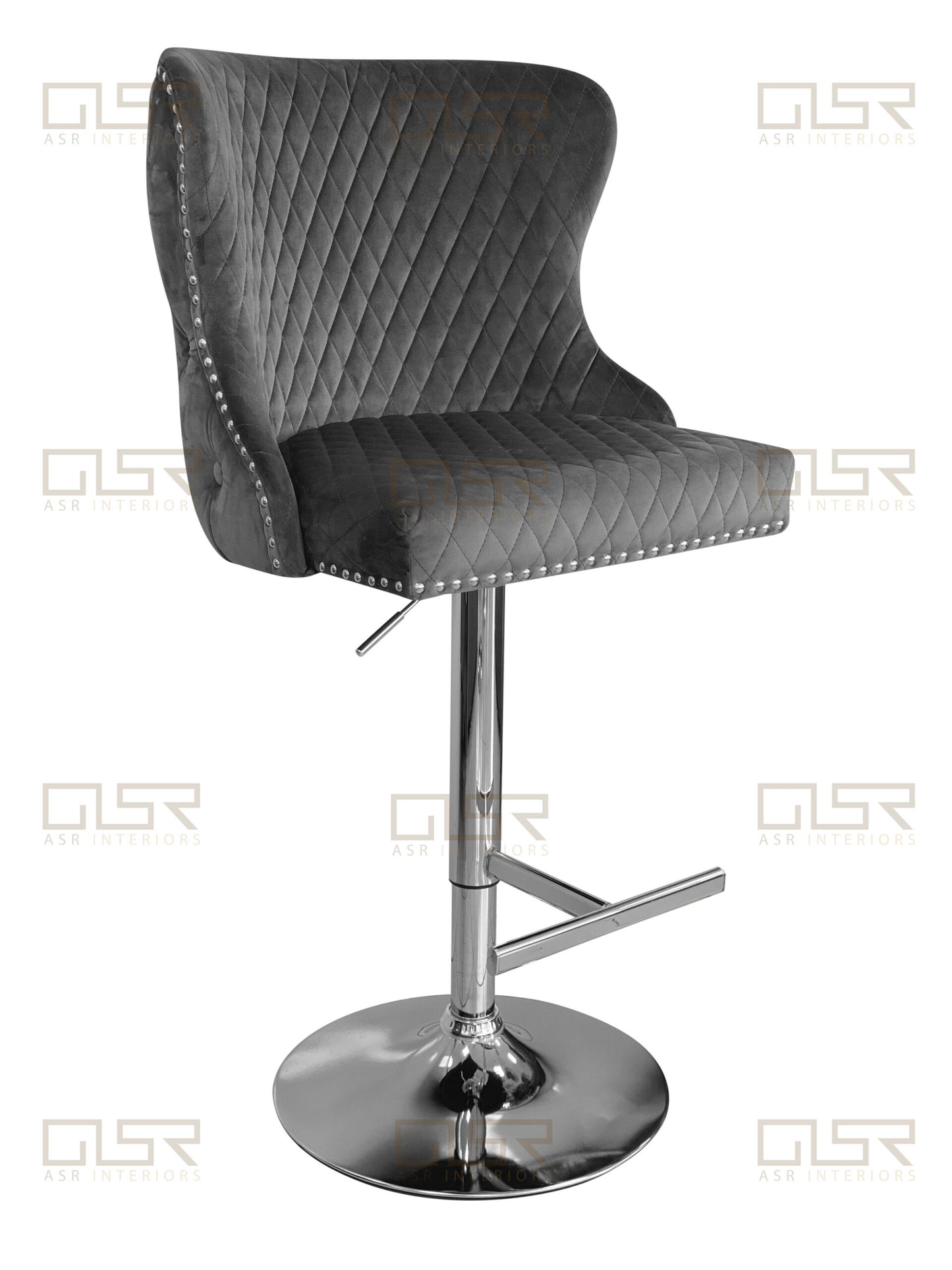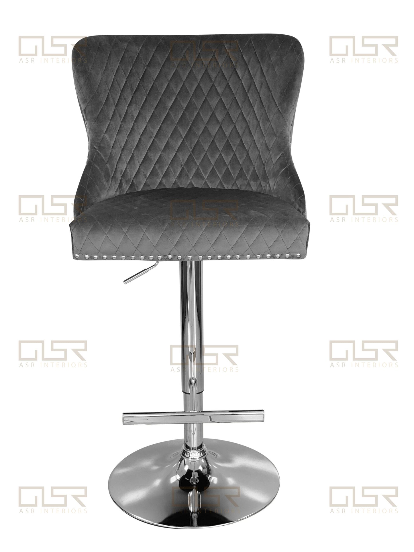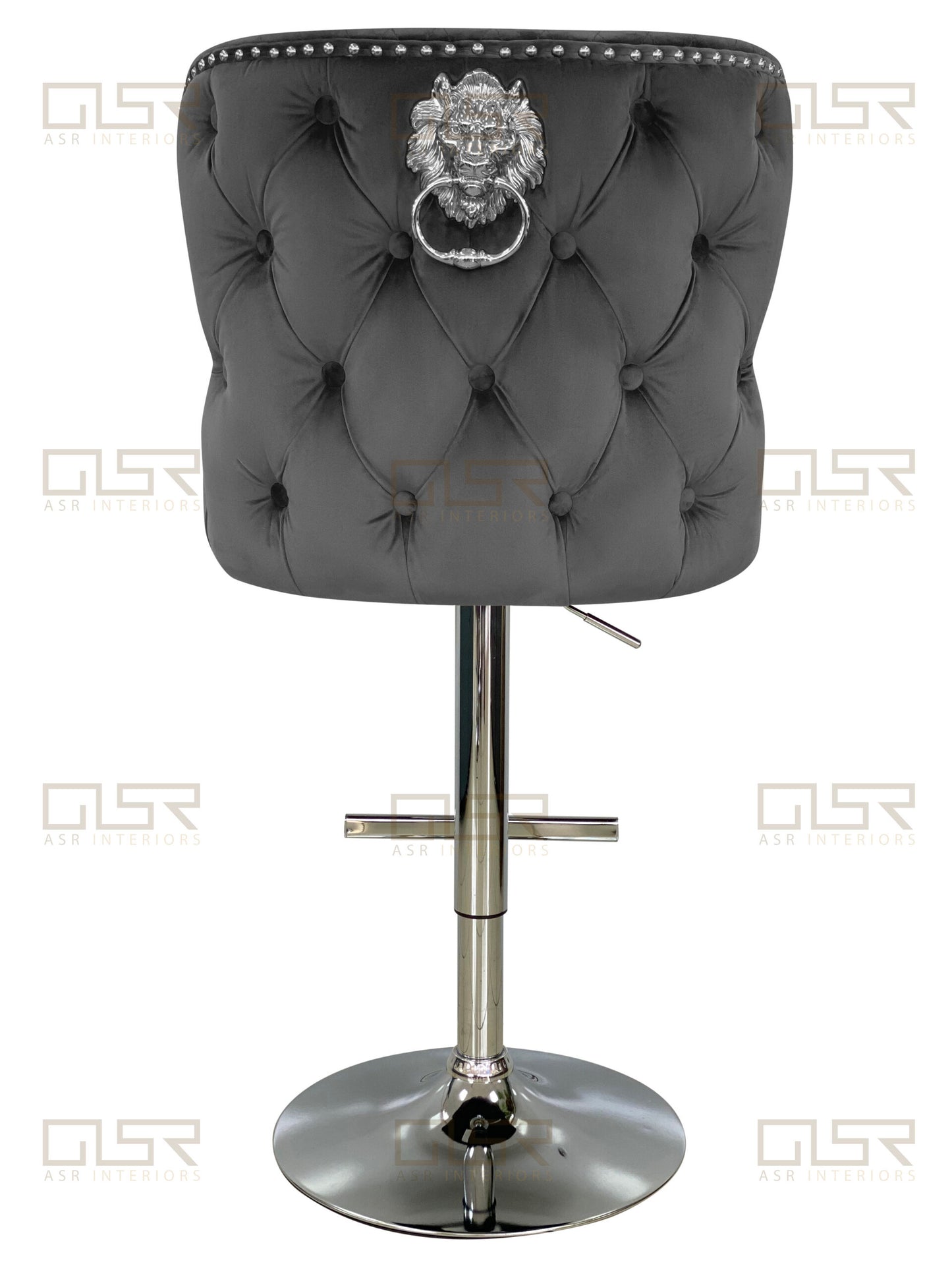 Valentina Grey Velvet Lion Knocker Bar Stool.