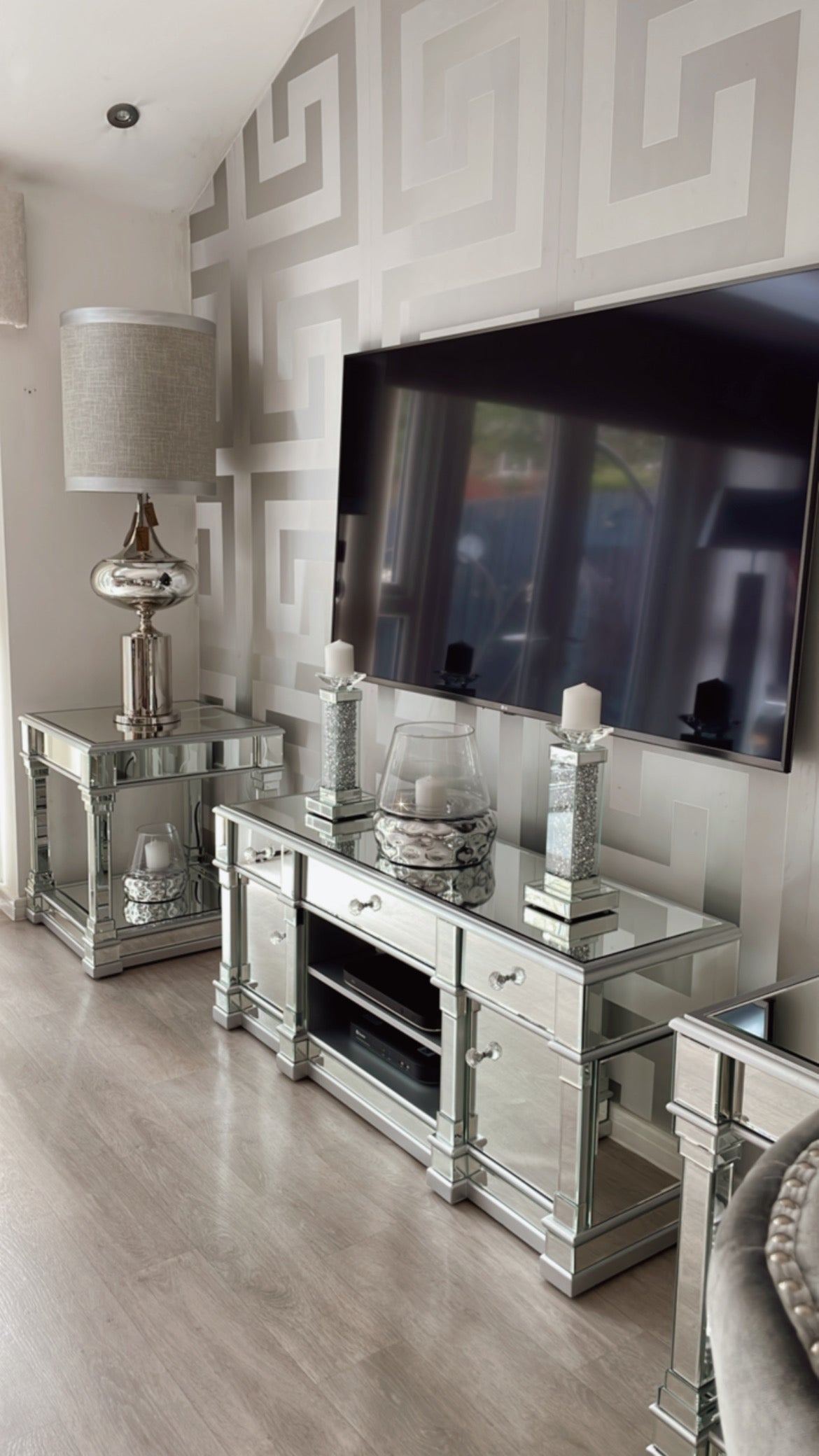 Venus Silver Mirror 2 Door 3 Drawer TV Chest