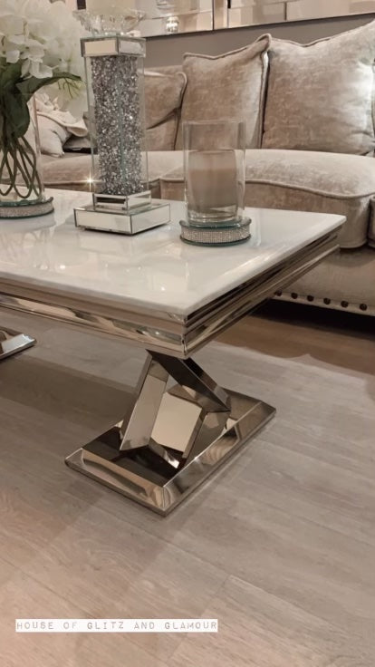 Winsor Smoke White Marble & Stainless Steel Base Coffee Table 120cm x 60cm x 42cm